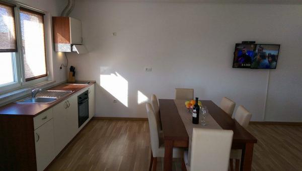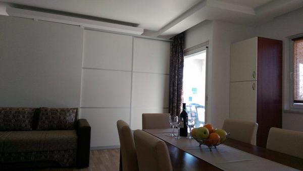 Vi havde lejet to lejligheder, de to store. Den første var på 1. sal og var i en god ren stand blev renoveret omkring fire år siden. Jeg tror, at køkkenet er lidt for lille til at lave mad til fem. Kun to kogeplader. Altanen er smuk, fantastisk til at sidde og dvælende med et stort bord og nok stole. Her har du et godt overblik over haven og poolen. Den anden blev lejet i stueetagen for første gang efter renoveringen. Lejligheden er meget moderne, og indrettet med stor følsomhed for optikken. Hvad er fantastisk her, Den har en komplet væg med skabe. Her har du absolut ikke noget problem med tøjet at stude. Terrassen har plads nok og dejligt at sidde. Puljen er super stor, Vi var i slutningen af August og havde puljen bortset fra nogle få undtagelser udelukkende for os, børnene kunne rase og gøre tull. Ejerne er meget hjælpsomme og venlige Ante kørte med vores mænd for at vise strandene og shoppingmulighederne. Tip med restauranten Amico i Privlaka var god, men meget overfyldt og støjende, fødevarer ok. Et besøg og en tur på stranden i Vir anbefales stærkt. Den direkte strand, gåtur er meget smal (sand) Vores absolutte favorit er Zaton Holiday Resort. Her er en nudist sektion til venstre, og resten er blandet med familier, par og alle nationaliteter. Vi havde en stormvejr dag her var vi i nin og har kitesurferen så under deres spektakulære spring. Endelig skal du sige meget afslappende og stille. Strandene som jeg sagde næsten alt sand eller grus blandet med sand. Kun at blive anbefalet! Tak Ante for alt.