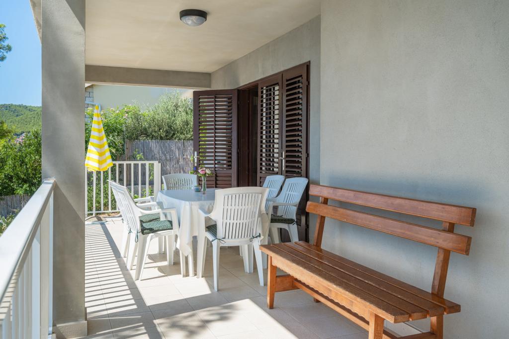 Lejlighed Branka ligger i den sydvestlige del af øen Korčula i den smukke bugt Prižba med udsigt over havet og små øer i nærheden. Den har adgang til stranden samt parkering og en stor terrasse. Lejligheden er designet til 6 personer og har tre soveværelser, et køkken, en stue og et toilet. Omkring 500 meter vestpå er der en stenstrand med forskellige faciliteter såsom en strandbar, en sejlerskole, jetski og udlejning af små både. Prižba har også restauranter og et dykkercenter.