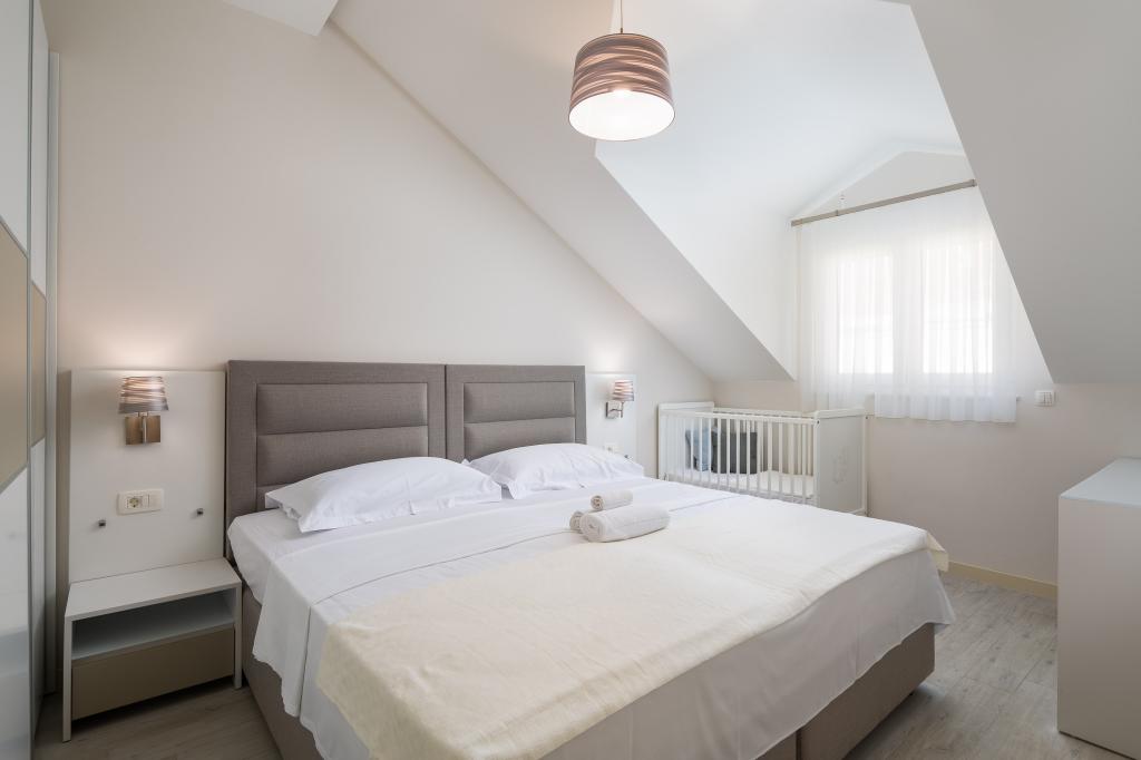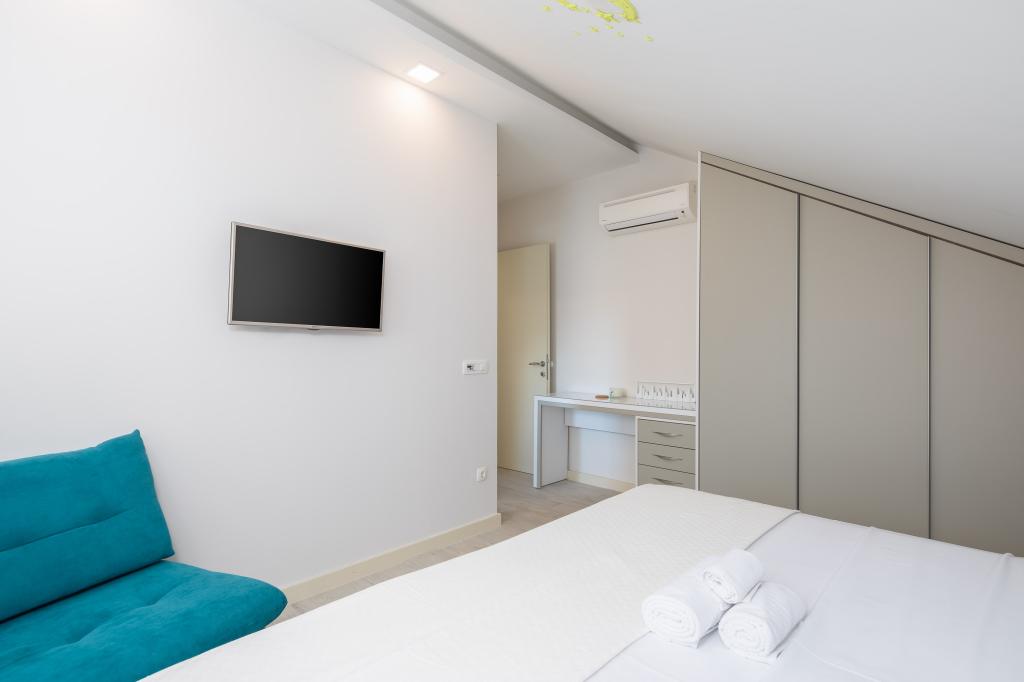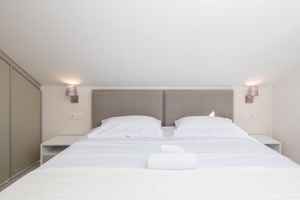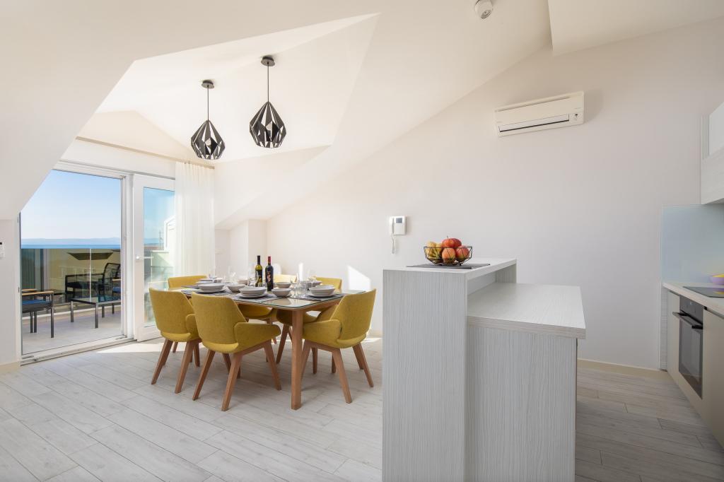 Penthouse Potter er en moderne lejlighed med 3 soveværelser og 3 badeværelser. Det rummelige køkken byder på fantastisk udstyr. Balkonen har udsigt over havet. Det ligger 50 m fra stranden i Promajna. Der er 2 parkeringspladser ved siden af bygningen.
