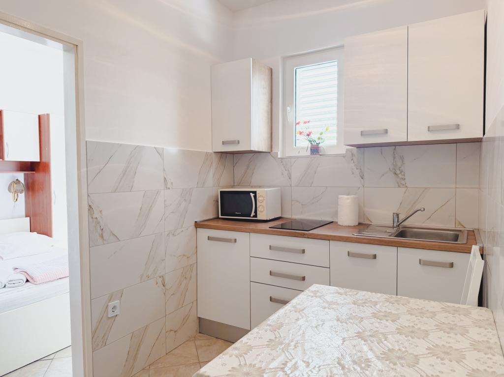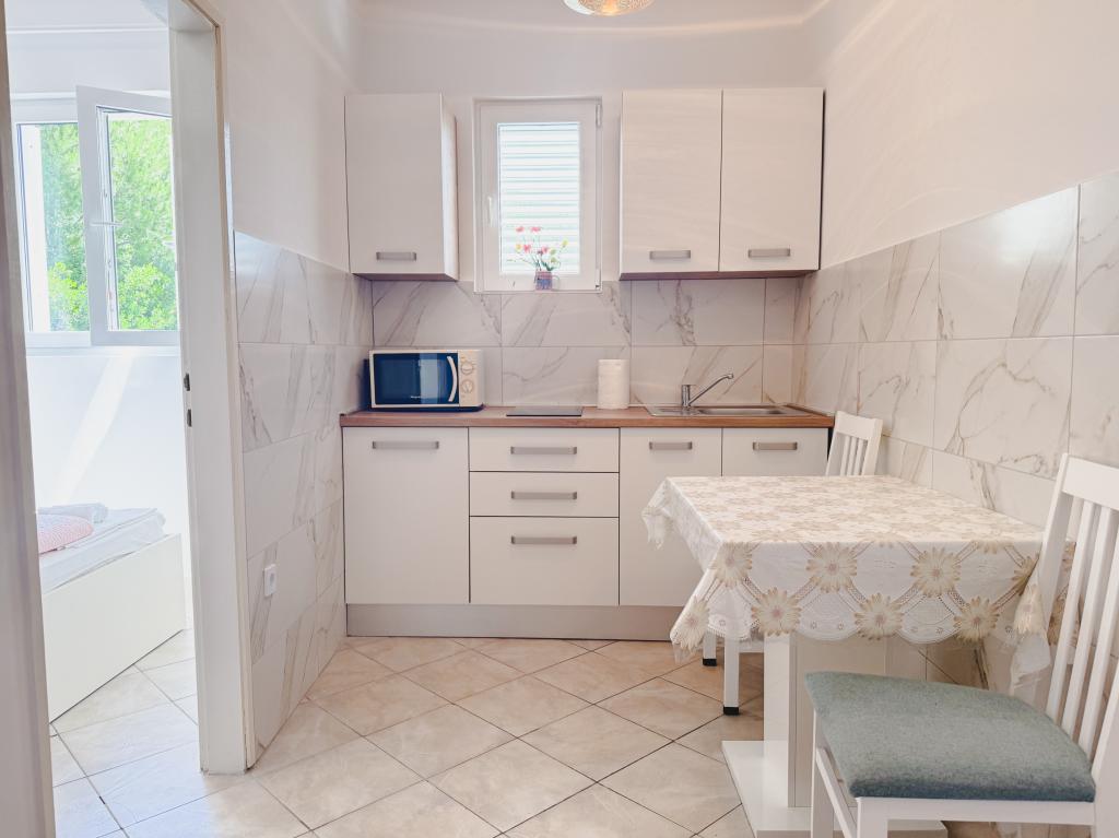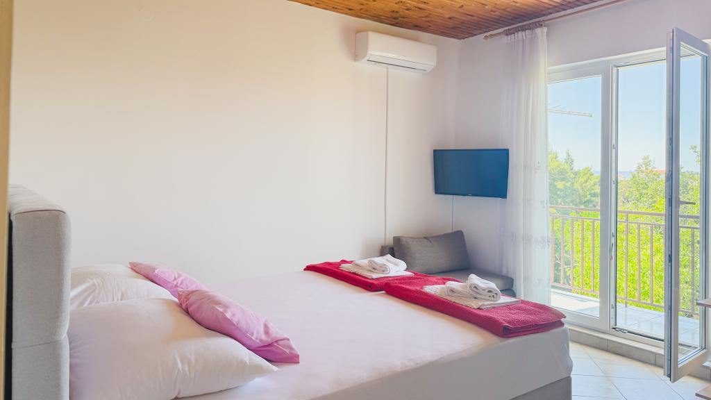 Rosemary Apartments er beliggende i en rolig del af Promajna, væk fra støjen fra turister og biler. Stien til stranden er 300 meter. Vores lejligheder har private balkoner med havudsigt, privat parkering, aircondition, 2 soveværelser og et privat køkken. Bag huset er der fælles terrasse i skygge.