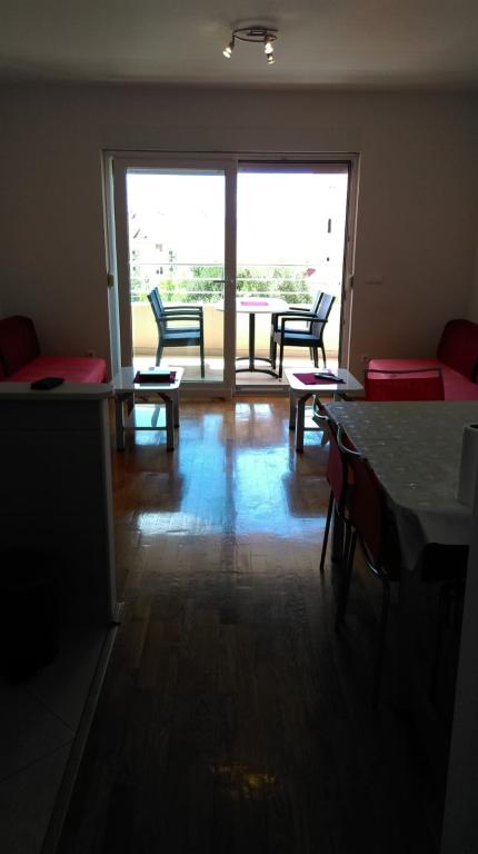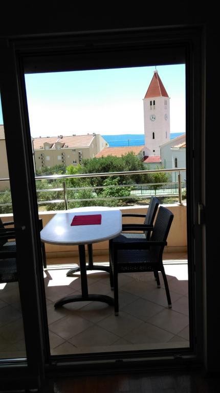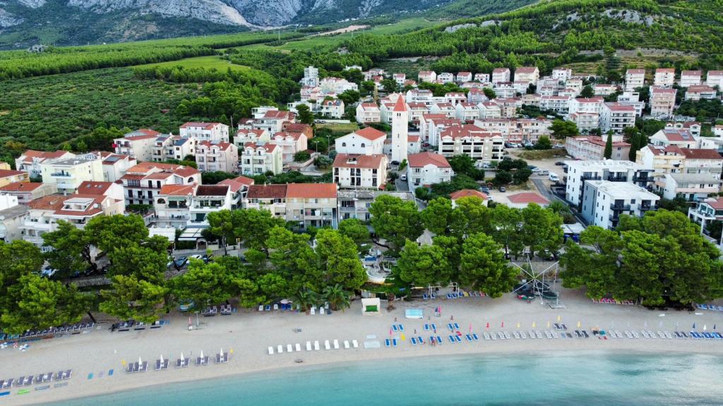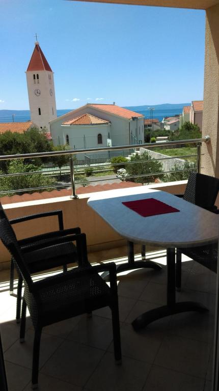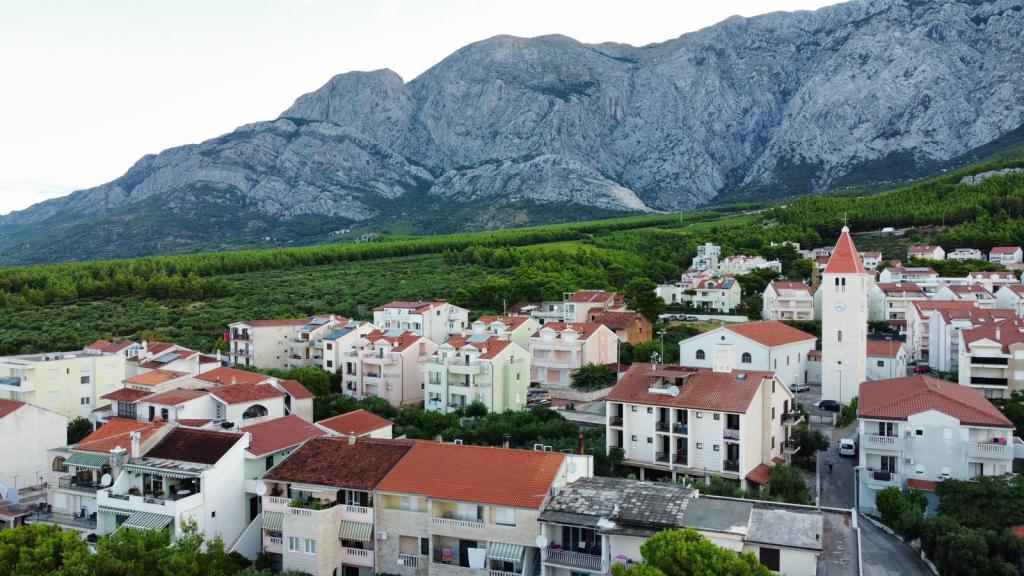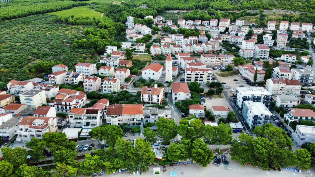 Lejlighed S2 (2+2) ligger i byen Promajna, i centrum af byen, lige over (nord) kirken - ca. 100 m til hovedstranden, på Prilaz obali 24. Der er parkering til én bil ved siden af lejligheden.