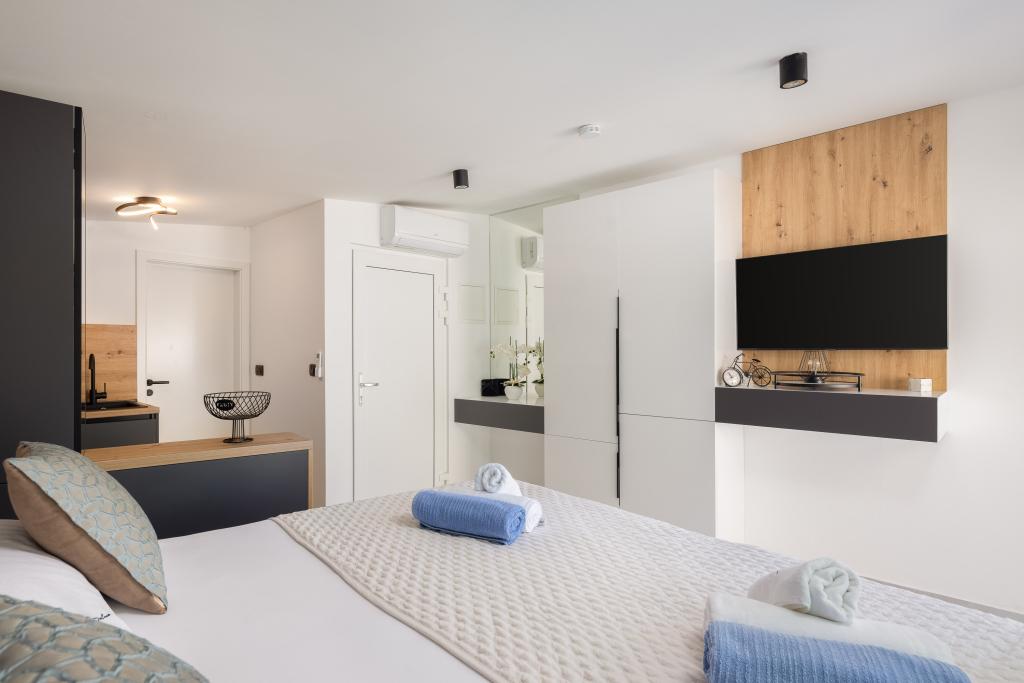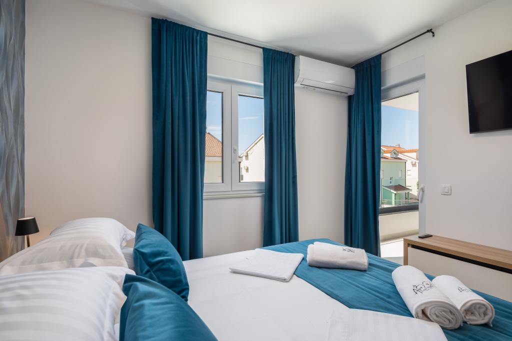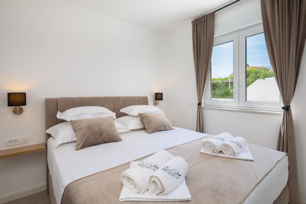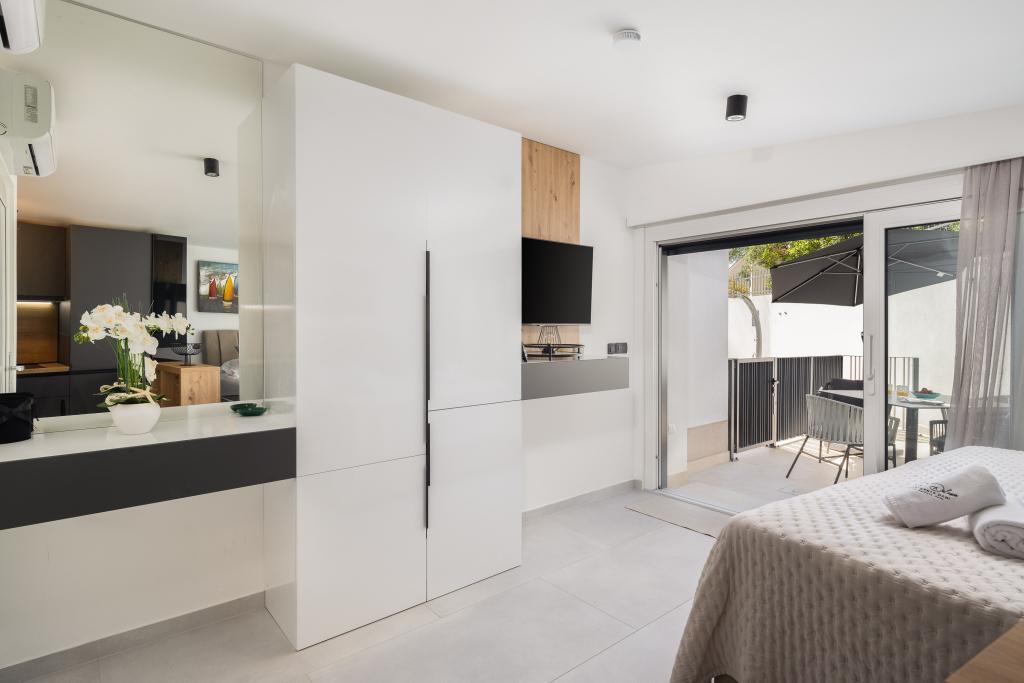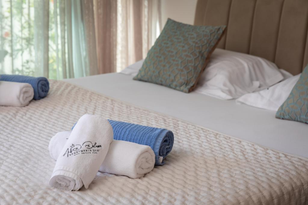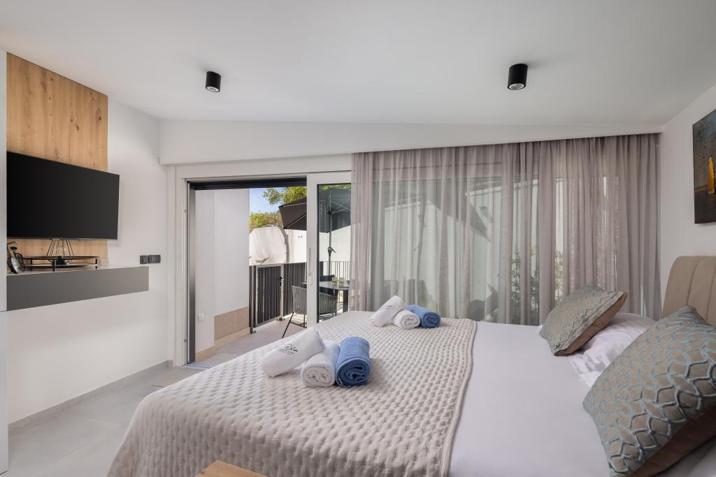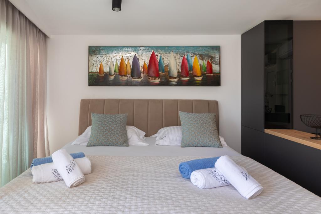 Vi præsenterer for dig A&D Deluxe lejligheder med swimmingpool, komfortable boligenheder beliggende i gåafstand fra havet, kun 300 meter. Hver lejlighed tilbyder en perfekt kombination af komfort og luksus. A1 lejlighed, med 2 soveværelser, 2 badeværelser og en rummelig terrasse, tilbyder en delvis udsigt over havet og er et ideelt sted for familier eller små grupper at slappe af. Derudover har gæsterne direkte adgang til poolen, så de kan nyde forfriskninger og ekstra underholdning. A2-suiten, også med 2 soveværelser og 2 badeværelser, har også adgang til swimmingpoolen, hvilket giver gæsterne ekstra sjov og afslapning. A3-lejligheden med et soveværelse og badeværelse har også adgang til poolen og er ideel til par eller mindre familier, der leder efter en afslappende ferie nær havet. Alle lejligheder er fuldt udstyrede, inklusive køkkener, privat parkering, klimaanlæg og smart-tv, hvilket sikrer komfort og bekvemmelighed under dit ophold. Nyd luksusen ved en privat pool og nærhed til smukke strande i disse lejligheder.