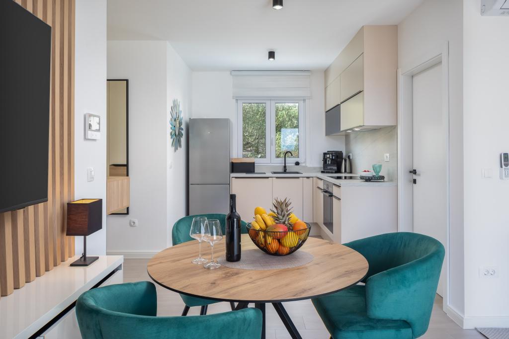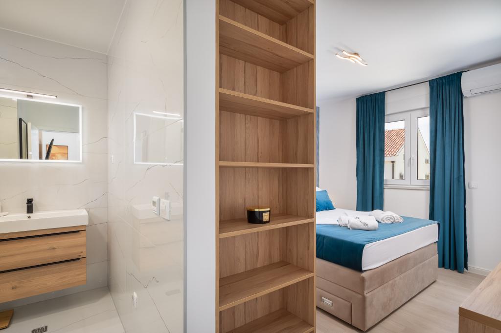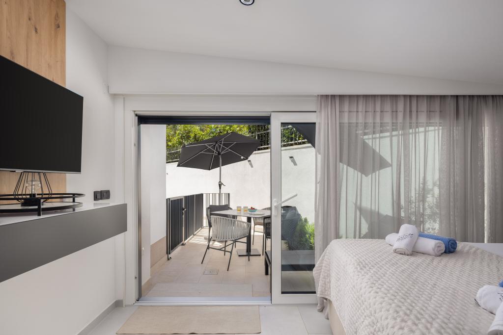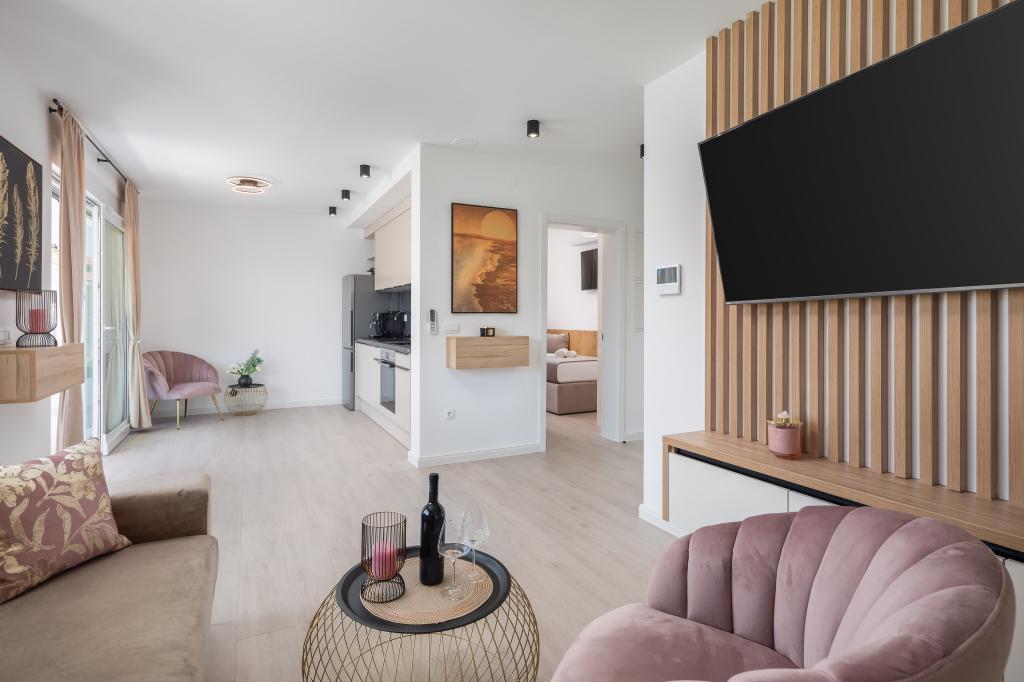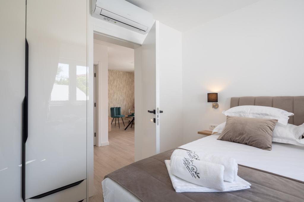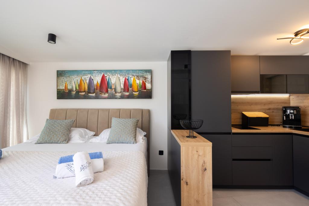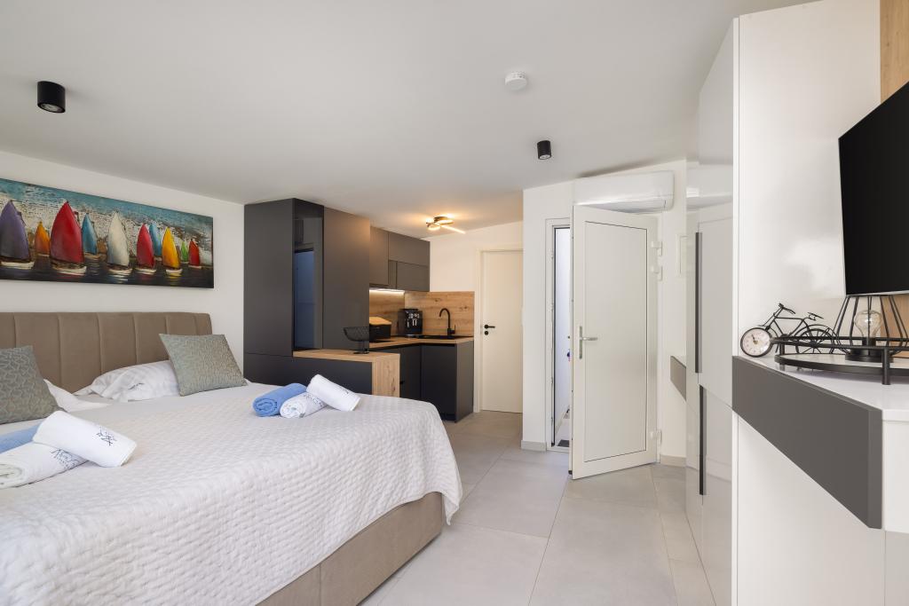 Vi præsenterer for dig A&D Deluxe lejligheder med swimmingpool, komfortable boligenheder beliggende i gåafstand fra havet, kun 300 meter. Hver lejlighed tilbyder en perfekt kombination af komfort og luksus. A1 lejlighed, med 2 soveværelser, 2 badeværelser og en rummelig terrasse, tilbyder en delvis udsigt over havet og er et ideelt sted for familier eller små grupper at slappe af. Derudover har gæsterne direkte adgang til poolen, så de kan nyde forfriskninger og ekstra underholdning. A2-suiten, også med 2 soveværelser og 2 badeværelser, har også adgang til swimmingpoolen, hvilket giver gæsterne ekstra sjov og afslapning. A3-lejligheden med et soveværelse og badeværelse har også adgang til poolen og er ideel til par eller mindre familier, der leder efter en afslappende ferie nær havet. Alle lejligheder er fuldt udstyrede, inklusive køkkener, privat parkering, klimaanlæg og smart-tv, hvilket sikrer komfort og bekvemmelighed under dit ophold. Nyd luksusen ved en privat pool og nærhed til smukke strande i disse lejligheder.