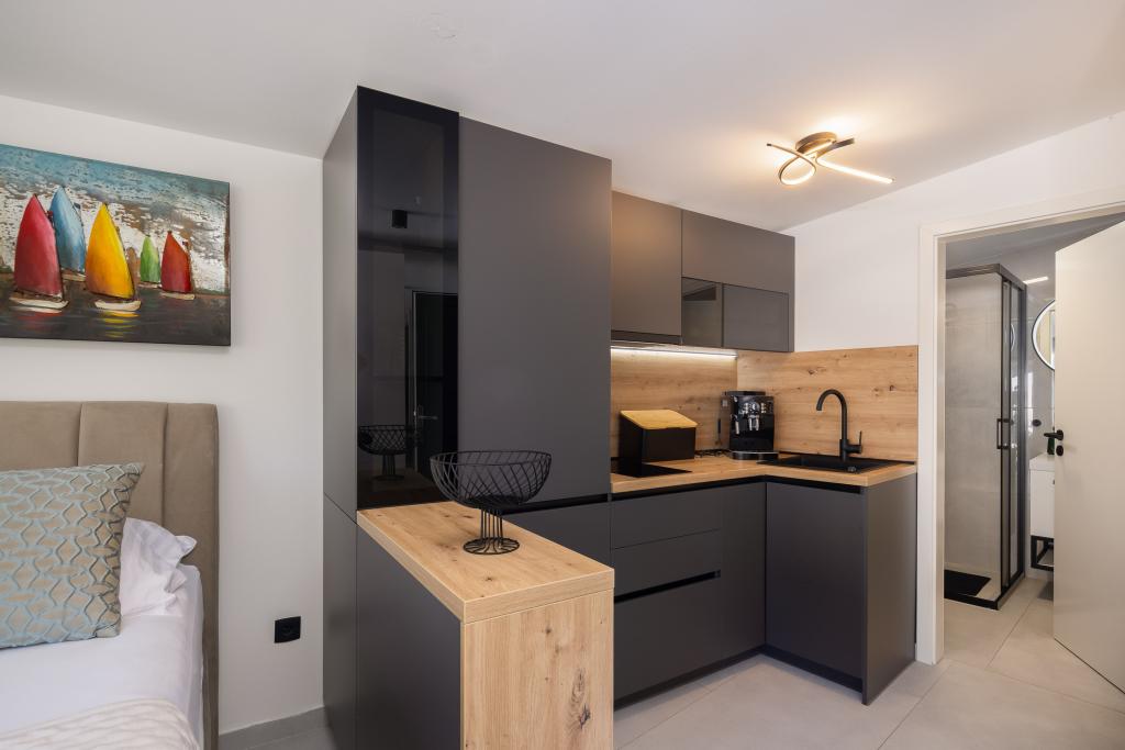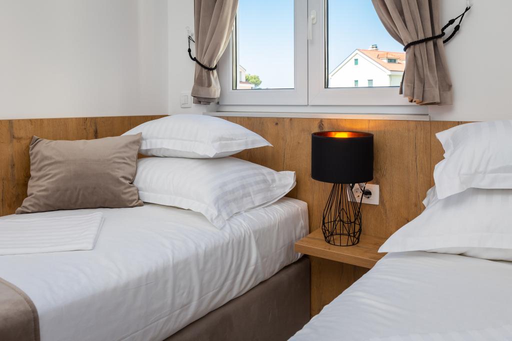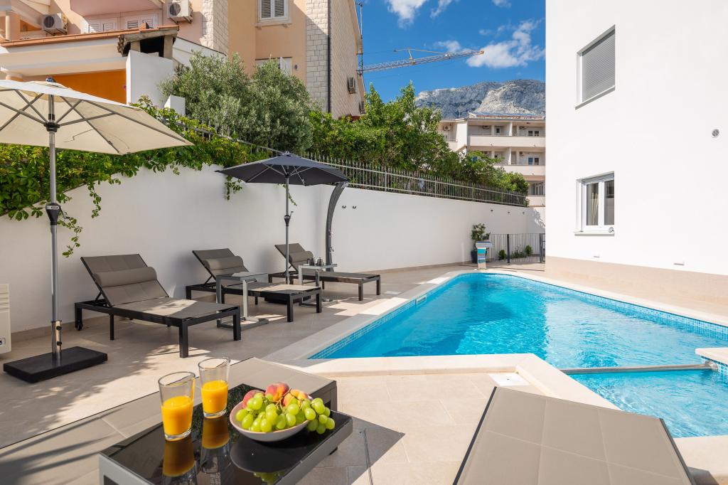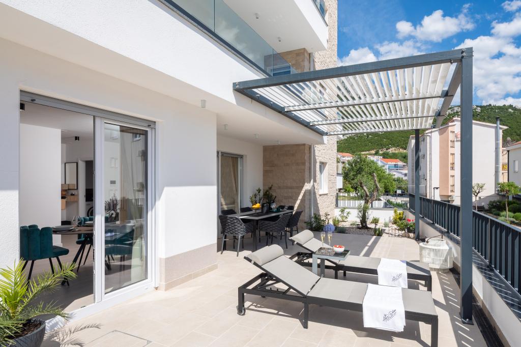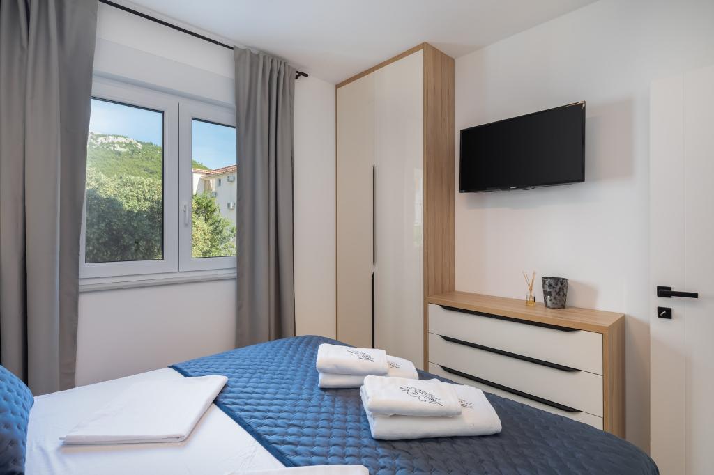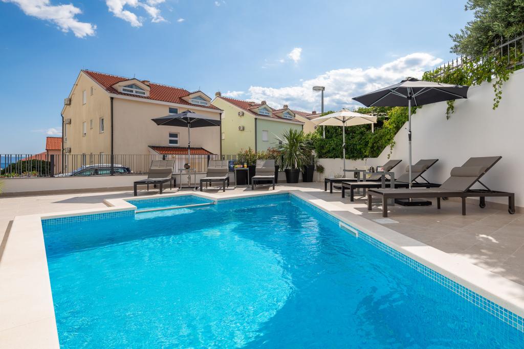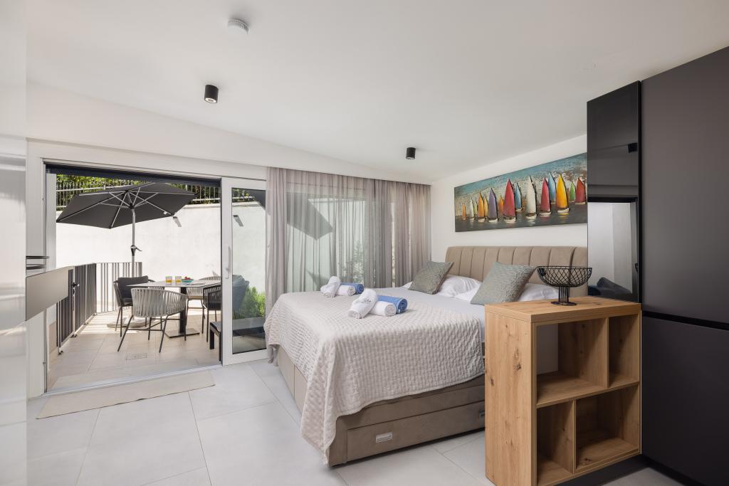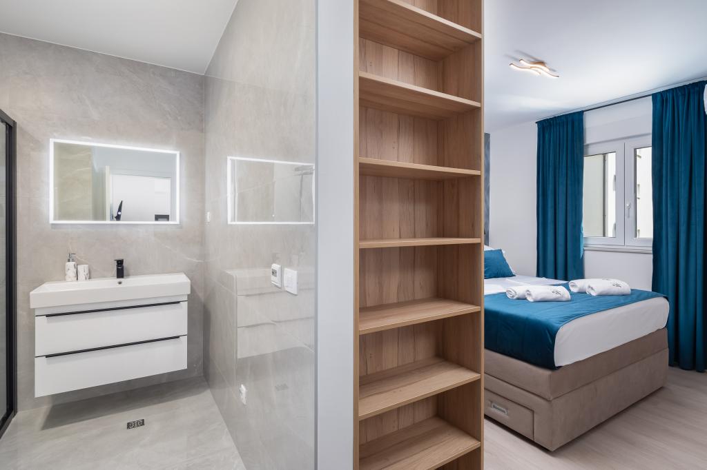 Vi præsenterer for dig A&D Deluxe lejligheder med swimmingpool, komfortable boligenheder beliggende i gåafstand fra havet, kun 300 meter. Hver lejlighed tilbyder en perfekt kombination af komfort og luksus. A1 lejlighed, med 2 soveværelser, 2 badeværelser og en rummelig terrasse, tilbyder en delvis udsigt over havet og er et ideelt sted for familier eller små grupper at slappe af. Derudover har gæsterne direkte adgang til poolen, så de kan nyde forfriskninger og ekstra underholdning. A2-suiten, også med 2 soveværelser og 2 badeværelser, har også adgang til swimmingpoolen, hvilket giver gæsterne ekstra sjov og afslapning. A3-lejligheden med et soveværelse og badeværelse har også adgang til poolen og er ideel til par eller mindre familier, der leder efter en afslappende ferie nær havet. Alle lejligheder er fuldt udstyrede, inklusive køkkener, privat parkering, klimaanlæg og smart-tv, hvilket sikrer komfort og bekvemmelighed under dit ophold. Nyd luksusen ved en privat pool og nærhed til smukke strande i disse lejligheder.