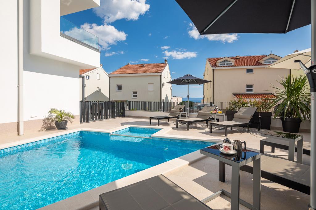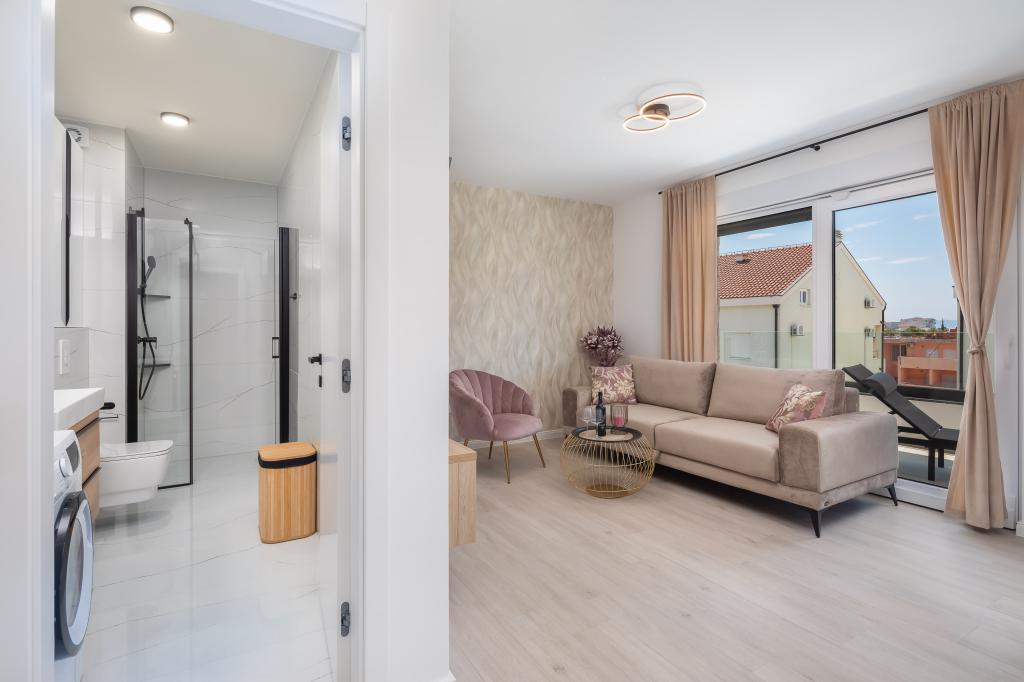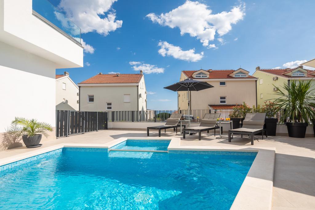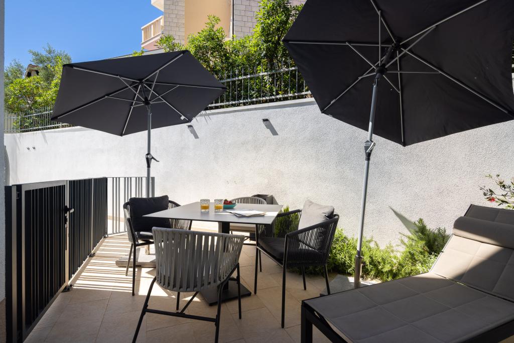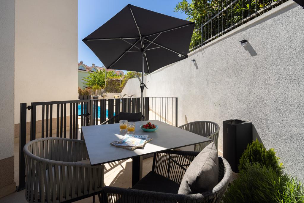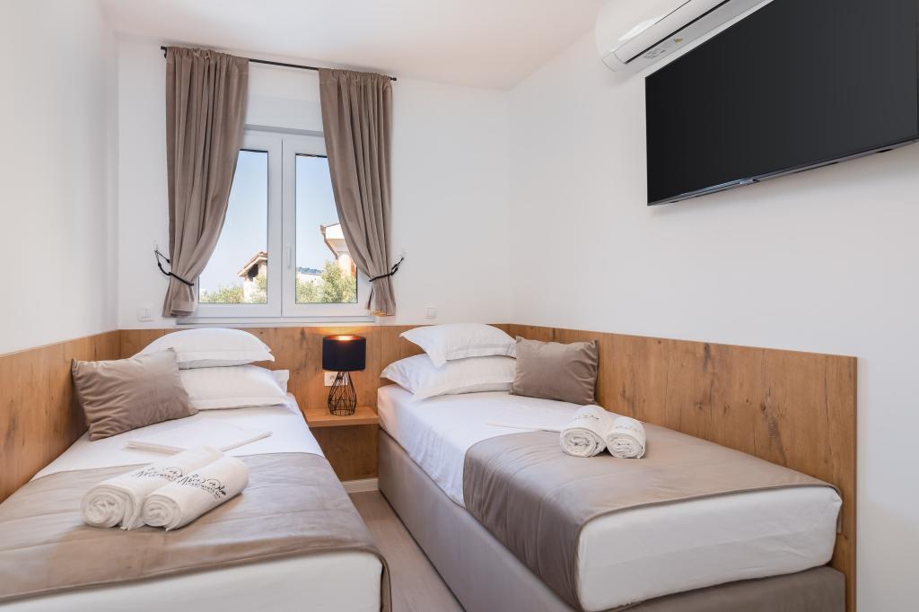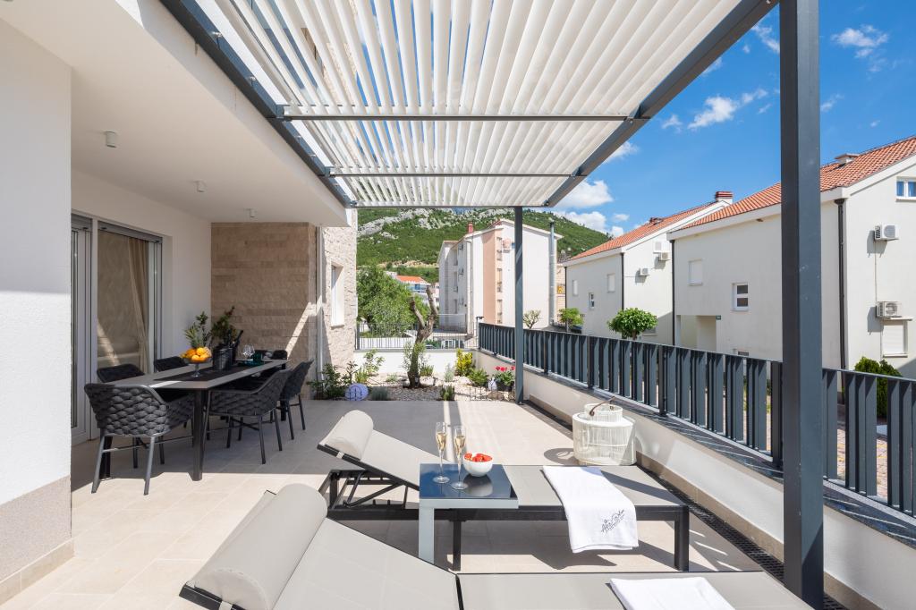 Vi præsenterer for dig A&D Deluxe lejligheder med swimmingpool, komfortable boligenheder beliggende i gåafstand fra havet, kun 300 meter. Hver lejlighed tilbyder en perfekt kombination af komfort og luksus. A1 lejlighed, med 2 soveværelser, 2 badeværelser og en rummelig terrasse, tilbyder en delvis udsigt over havet og er et ideelt sted for familier eller små grupper at slappe af. Derudover har gæsterne direkte adgang til poolen, så de kan nyde forfriskninger og ekstra underholdning. A2-suiten, også med 2 soveværelser og 2 badeværelser, har også adgang til swimmingpoolen, hvilket giver gæsterne ekstra sjov og afslapning. A3-lejligheden med et soveværelse og badeværelse har også adgang til poolen og er ideel til par eller mindre familier, der leder efter en afslappende ferie nær havet. Alle lejligheder er fuldt udstyrede, inklusive køkkener, privat parkering, klimaanlæg og smart-tv, hvilket sikrer komfort og bekvemmelighed under dit ophold. Nyd luksusen ved en privat pool og nærhed til smukke strande i disse lejligheder.