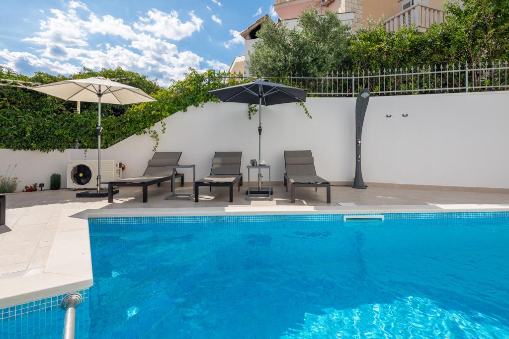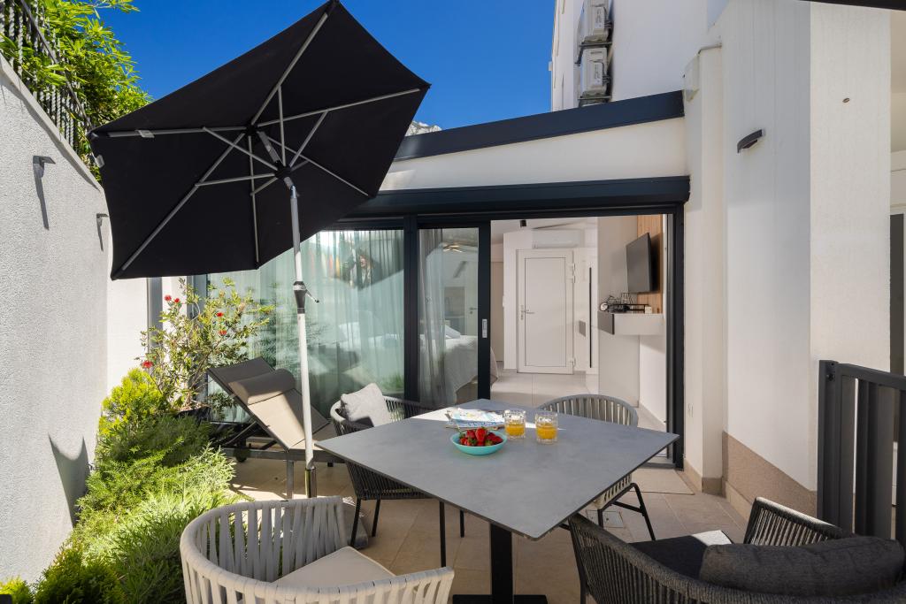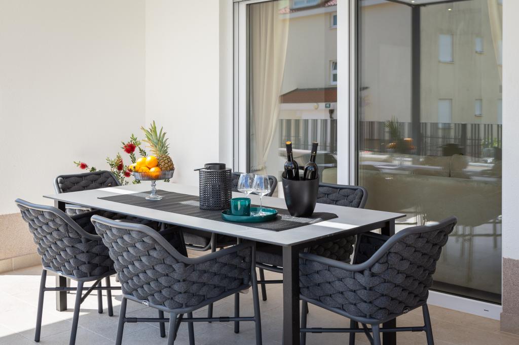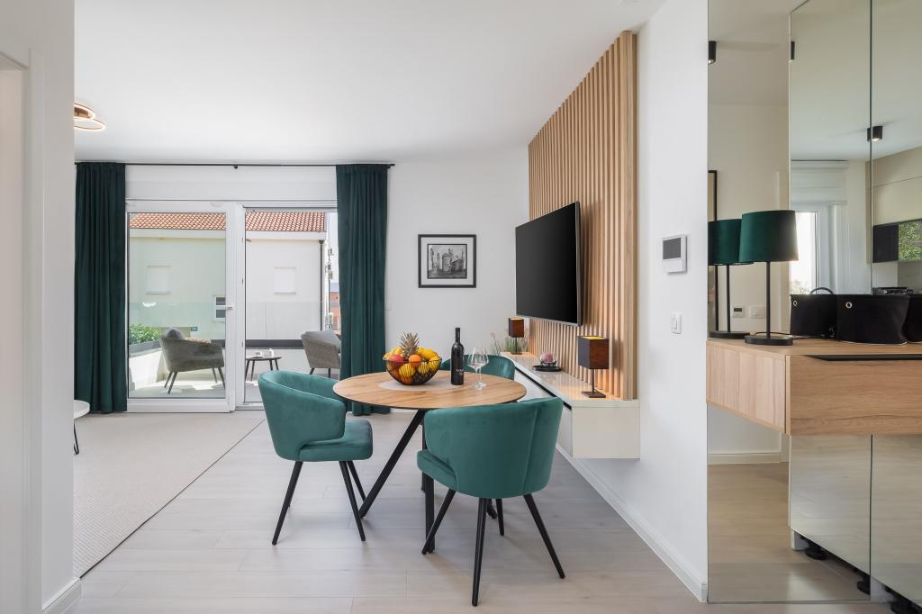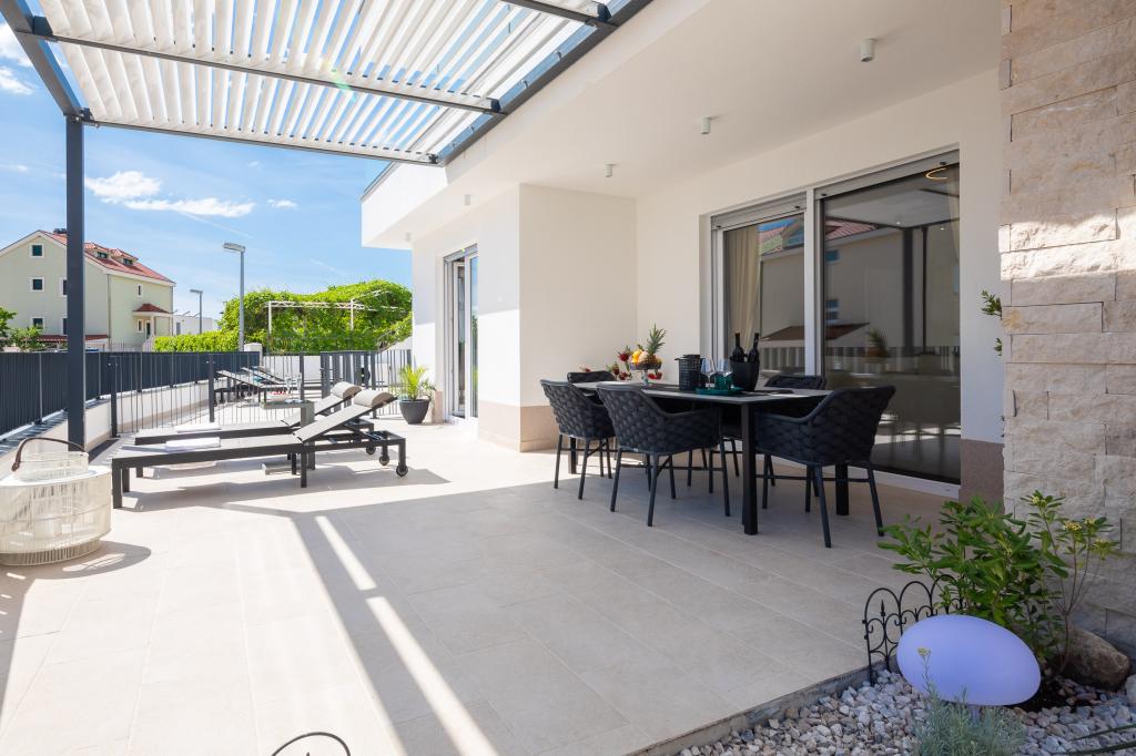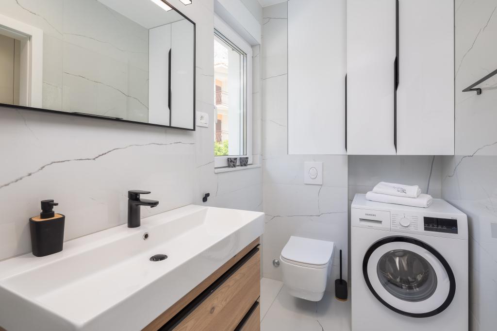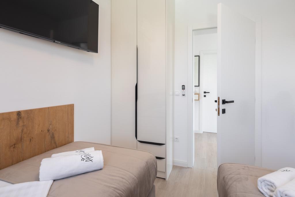 Vi præsenterer for dig A&D Deluxe lejligheder med swimmingpool, komfortable boligenheder beliggende i gåafstand fra havet, kun 300 meter. Hver lejlighed tilbyder en perfekt kombination af komfort og luksus. A1 lejlighed, med 2 soveværelser, 2 badeværelser og en rummelig terrasse, tilbyder en delvis udsigt over havet og er et ideelt sted for familier eller små grupper at slappe af. Derudover har gæsterne direkte adgang til poolen, så de kan nyde forfriskninger og ekstra underholdning. A2-suiten, også med 2 soveværelser og 2 badeværelser, har også adgang til swimmingpoolen, hvilket giver gæsterne ekstra sjov og afslapning. A3-lejligheden med et soveværelse og badeværelse har også adgang til poolen og er ideel til par eller mindre familier, der leder efter en afslappende ferie nær havet. Alle lejligheder er fuldt udstyrede, inklusive køkkener, privat parkering, klimaanlæg og smart-tv, hvilket sikrer komfort og bekvemmelighed under dit ophold. Nyd luksusen ved en privat pool og nærhed til smukke strande i disse lejligheder.