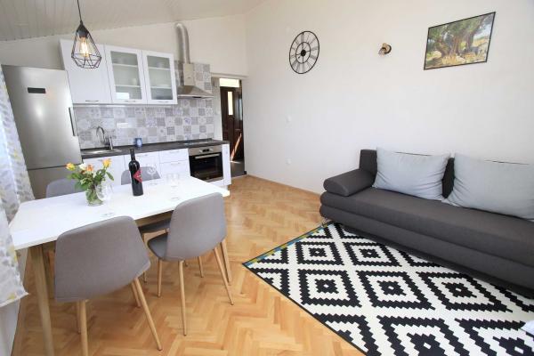 Fantastisk sted bogstaveligt talt på stranden. Lejligheden er veludstyret og ser ud som på billederne. Stor og overdækket terrasse med smuk udsigt over havet. Et roligt sted uden menneskemængder, hvor du virkelig kan slappe af. Kære ejere. Overfor lejligheden er der en taverna, hvor du kan spise meget godt og velsmagende mad (vores favorit). Parkering i gården. Cirka 800 meter til den større by Promajn, som myldrer med liv. Vi nød vores ophold her.