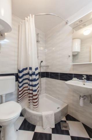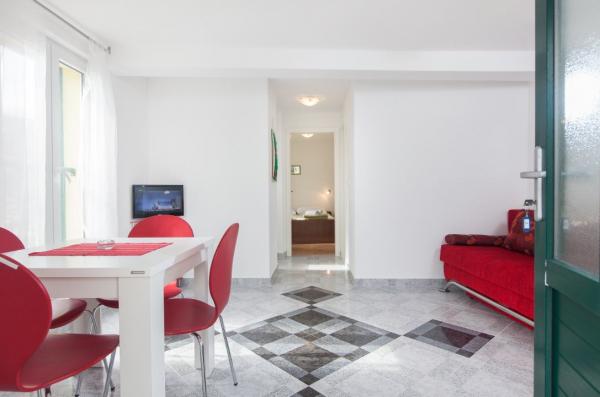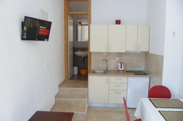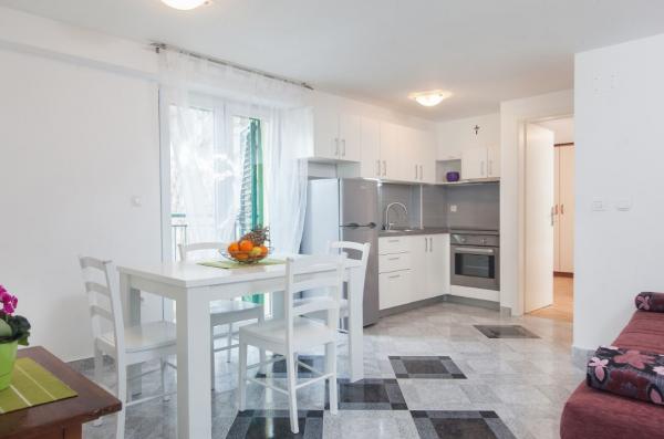 Vi opholdt sig i Ap. 2 + 2 på tredje sal. Højde var ikke et problem, fordi efter faldende trappen næsten under hans ånde strand. Vidunderlig strand med fyrretræer og palmer for dem, der søger skygge. Lejlighed meget flot, ikke alt for store værelser, men tilstrækkelig øvrigt ingen sad i dem, fordi vi havde en enorm terrasse. En terrasse med smuk udsigt. Dette er vores 7th ophold i Kroatien, men så vidunderligt panorama aldrig har haft. Jeg lo, at spise morgenmad venstre øje og kiggede på øverst til højre på havet:-). Jeg var lidt bekymret separat køkken (på terrassen), og det viste sig at være en fordel. Du kunne få op, når jeg vil, og gør dig klar mad uden at forstyrre andre stadig sover familiemedlemmer. Internet fungerede perfekt. I køkkenet alle de nødvendige udstyr med et stort køleskab. Spotlessly ren og håndklæder ændret til denne lille hjemmelavede sæber, i hvert fald på oliwce. Og værter - den bedste af alle hidtil stødt. Gratis fik 6 (for 3 personer) og bages friskfanget fisk på grillen. Og en anden, sammen parabol figner plukket i haven. Sea temmelig dyb, men krystalklar. Alt i alt en meget sjov ferie. Tak Babic !!