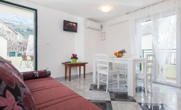 Smuk beliggenhed, vært er en stor familie, der vil gøre alt for at sikre deres gæster et behageligt ophold i deres hjem. Huset er næsten på stranden, der er også smuk med palmer og fyrretræer. Udsigten omkring er betagende, Biokovo bjerget på den ene side og øer (Hvar, Brac) på den anden. Dag anbefales!