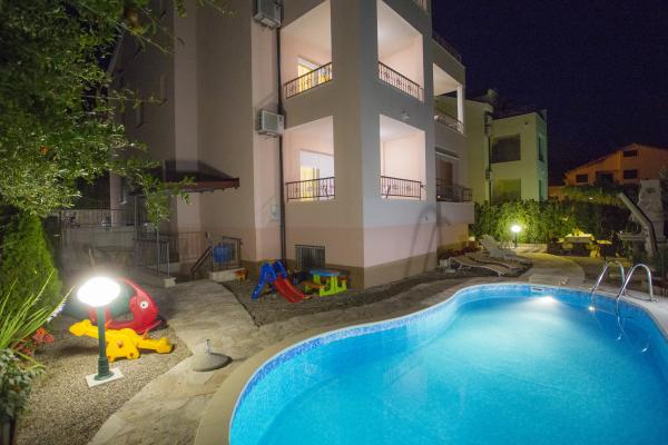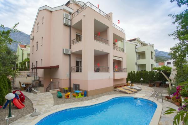 LEJLIGHEDER BOJKA - et nyt hus med en swimmingpool, med luksuslejligheder er beliggende i byen Promajna, på gaden Obala 24 C, i centrum af byen, ca. 90 m fra hovedstranden. Udover overnatning i eksklusivt indrettede lejligheder, kan I også benytte swimmingpoolen ved siden af huset. Alle køkkener er moderne udstyret (køleskab med fryser, komfur, ovn, elkedel, opvaskemaskine...), alle badeværelser er moderne udstyret (strygejern med bord, vaskemaskine, hårtørrer...). Der er gratis wi-fi internet i hver lejlighed. App-mærkerne er: Bojka 1, 2, 3, 4, 5 og 6. Hver lejlighed har en gratis parkeringsplads ved siden af huset. I husets gård er der grill til alle gæster samt bord ved siden af grillen. En husholderske, der tager sig af gæsterne, opholder sig i anlægget hele tiden.