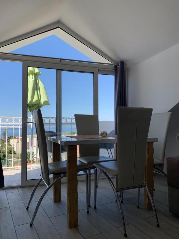 Promajna lejlighed 200 m fra havet, bygget i 2007. Separat 3 lejligheder pr. etage med havudsigt. Sikker parkering, fjernsyn, aircondition, internet. Stranden ligger i en fyrreskov. Et lille sted ved havet, der er ideelt til ferie, ved siden af er der en børnelandsby kendt for behandling af bronkitis. Hver lejlighed har et soveværelse med en dobbeltseng plus en ekstra, et badeværelse, et køkken med en sofa, en terrasse med udsigt over havet. Møblerne er nye. Makarska ligger 5 km derfra. Baška Voda ligger 3 km derfra. Promajna er forbundet med Baška Vod via en promenade gennem en fyrreskov ved havet. Turistskat er ikke inkluderet i prisen.