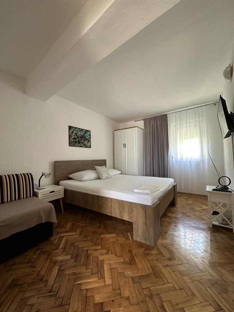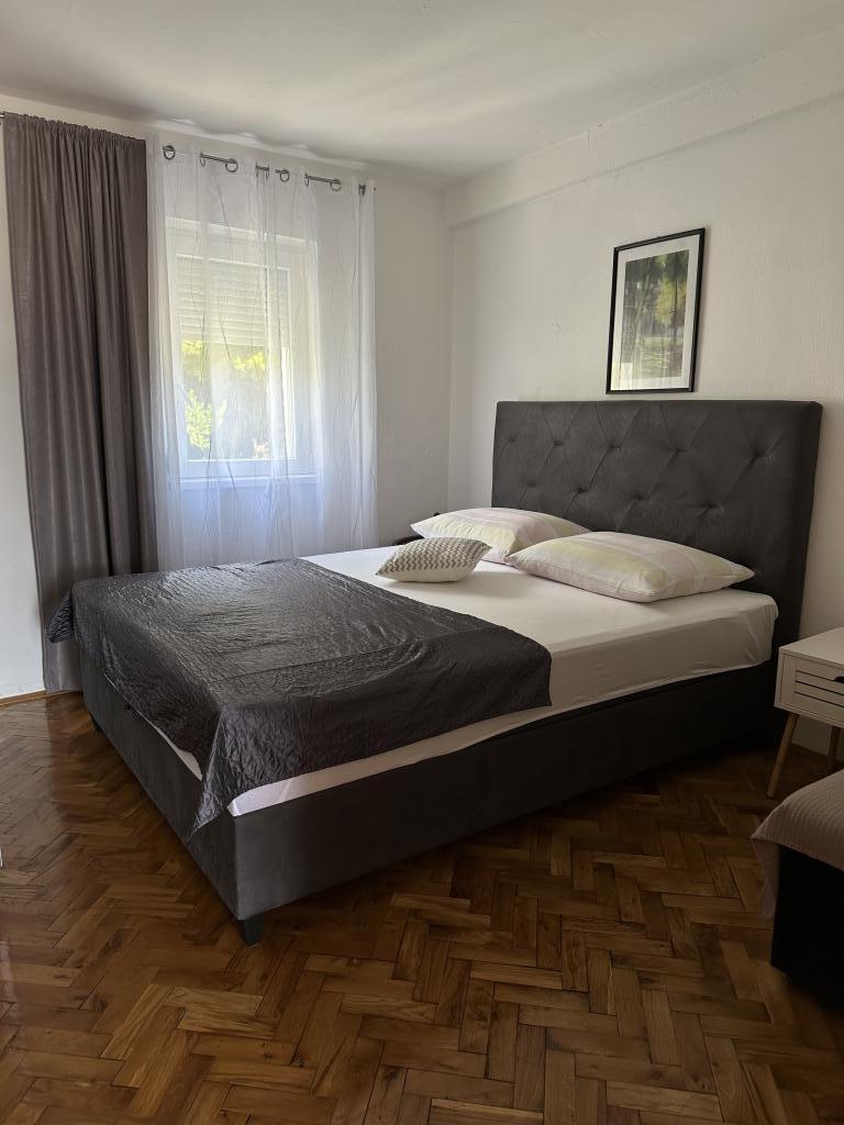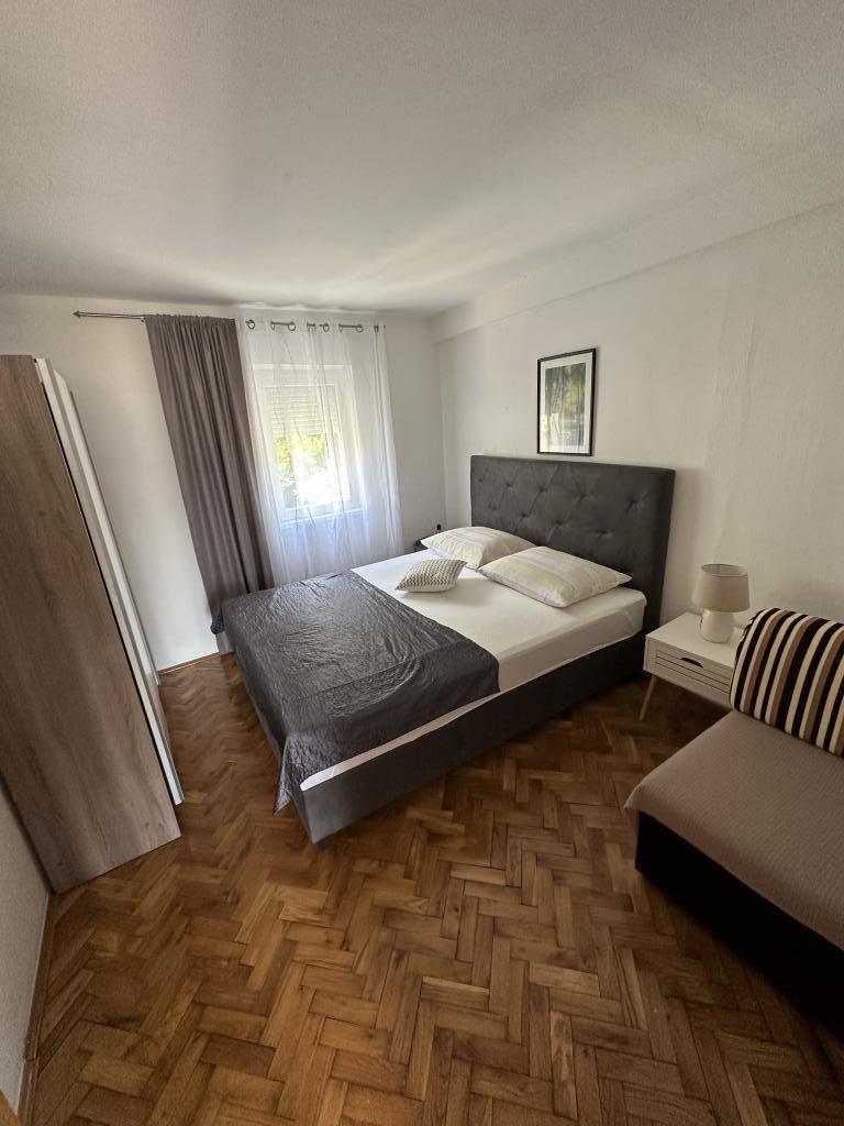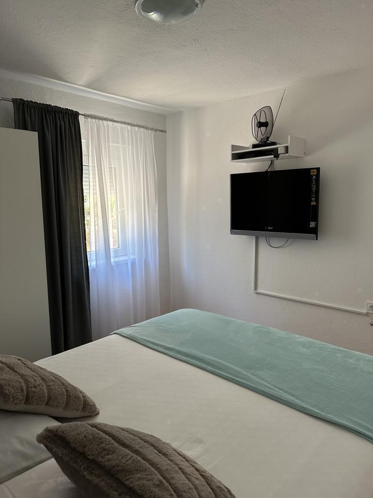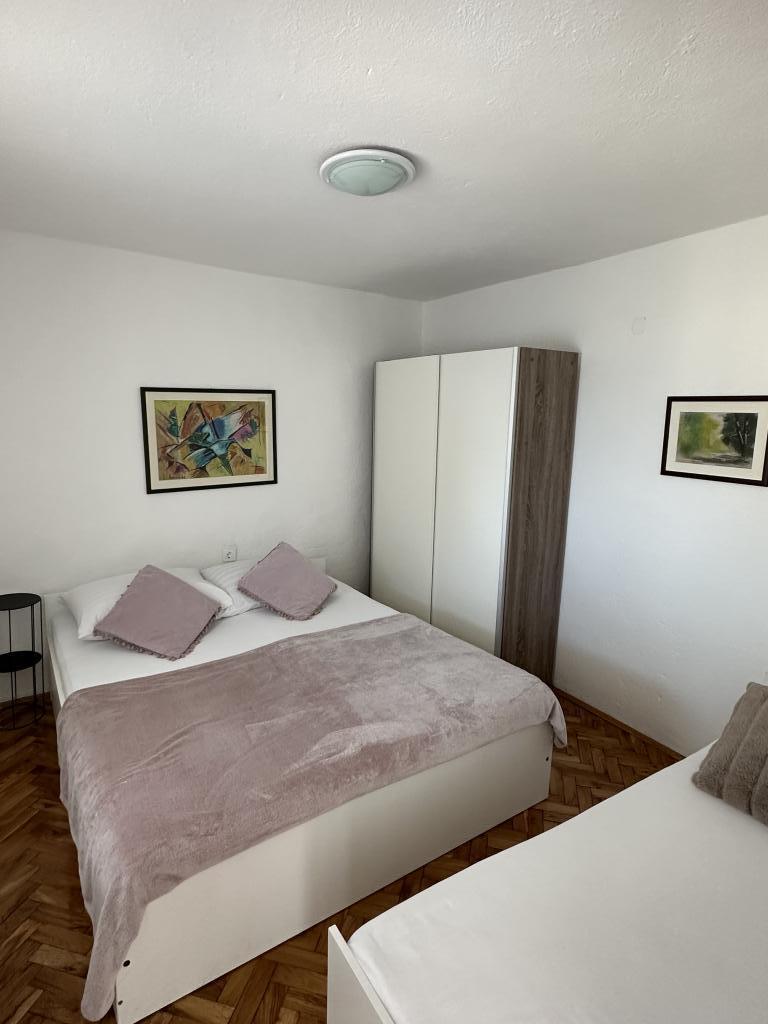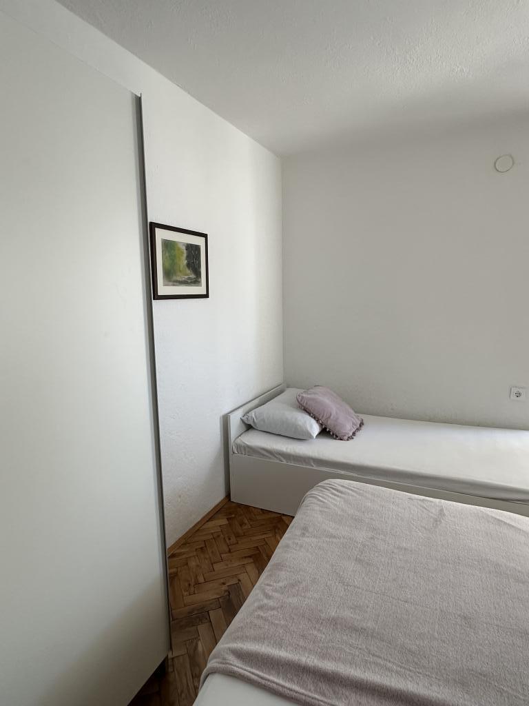 Promajna lejlighed 200 m fra havet. Adskil 3 lejligheder per etage med havudsigt. Parkering, TV, aircondition, internet. Stranden ligger i en fyrreskov. En lille badeby ideel til ferier ved siden af hvor der er en børneby, der er kendt for at behandle bronkitis. Hver lejlighed har to soveværelser med dobbeltsenge plus ekstra seng, badeværelse, køkken, terrasse med havudsigt. Makarska 5 km væk. Baska Voda 3 km væk. Promajna er forbundet med Baška Voda-promenaden gennem fyrreskoven ved havet. Prisen er 80 euro plus 1 € turistafgift per voksen.