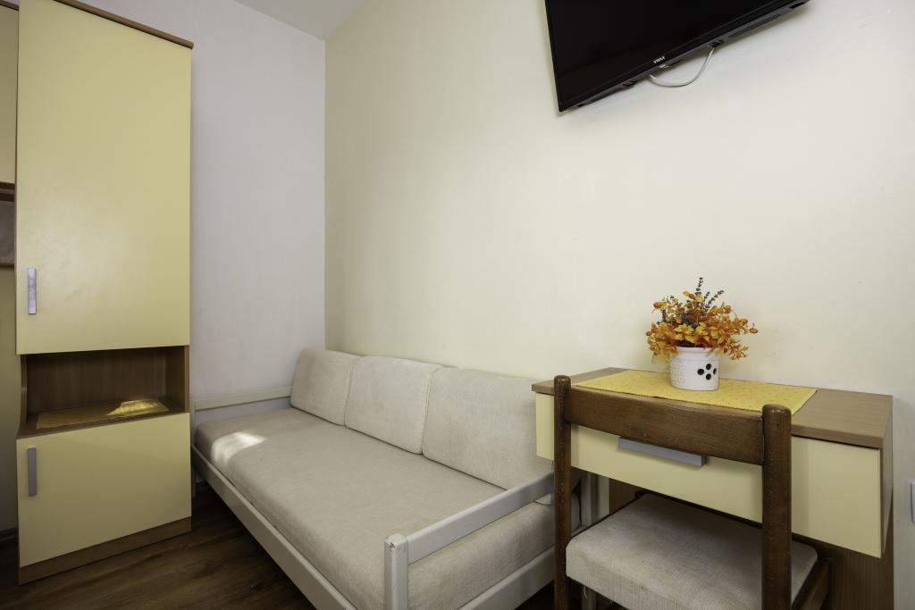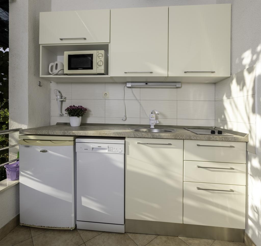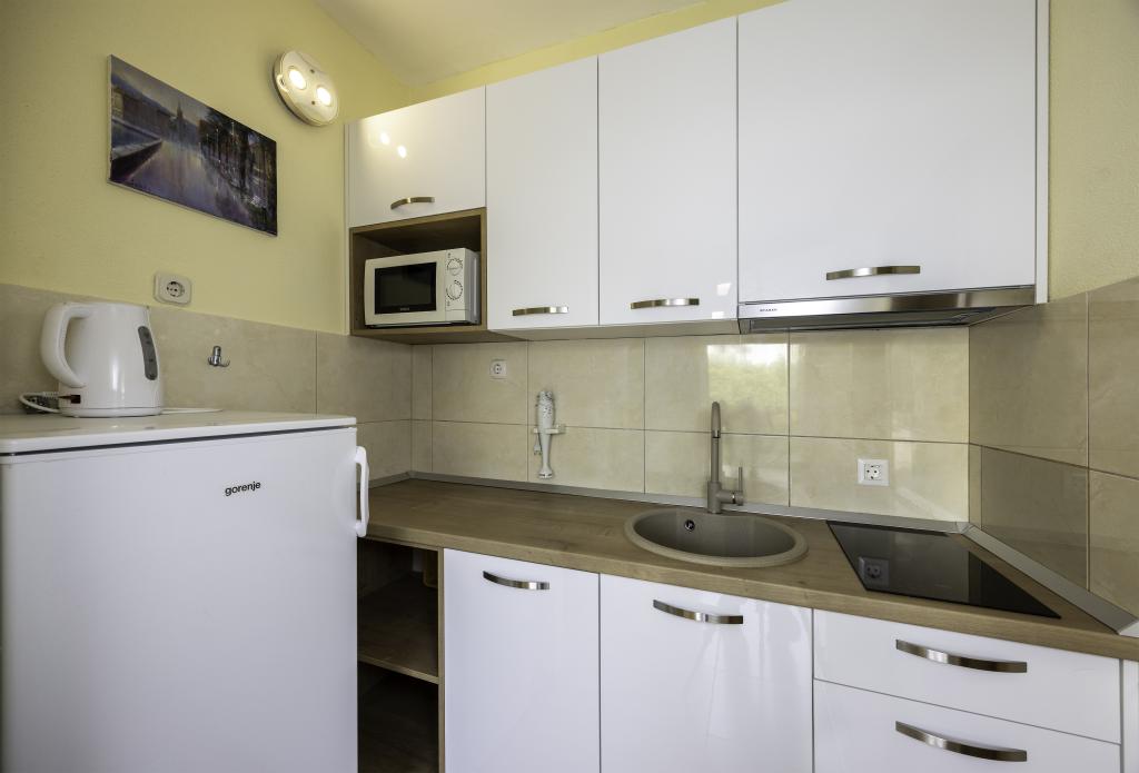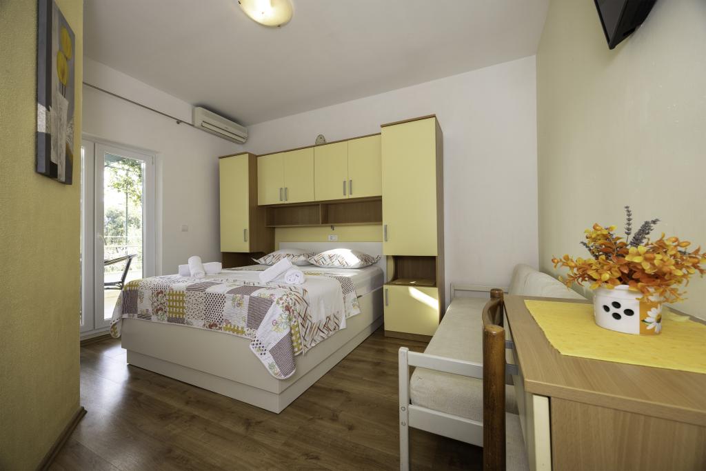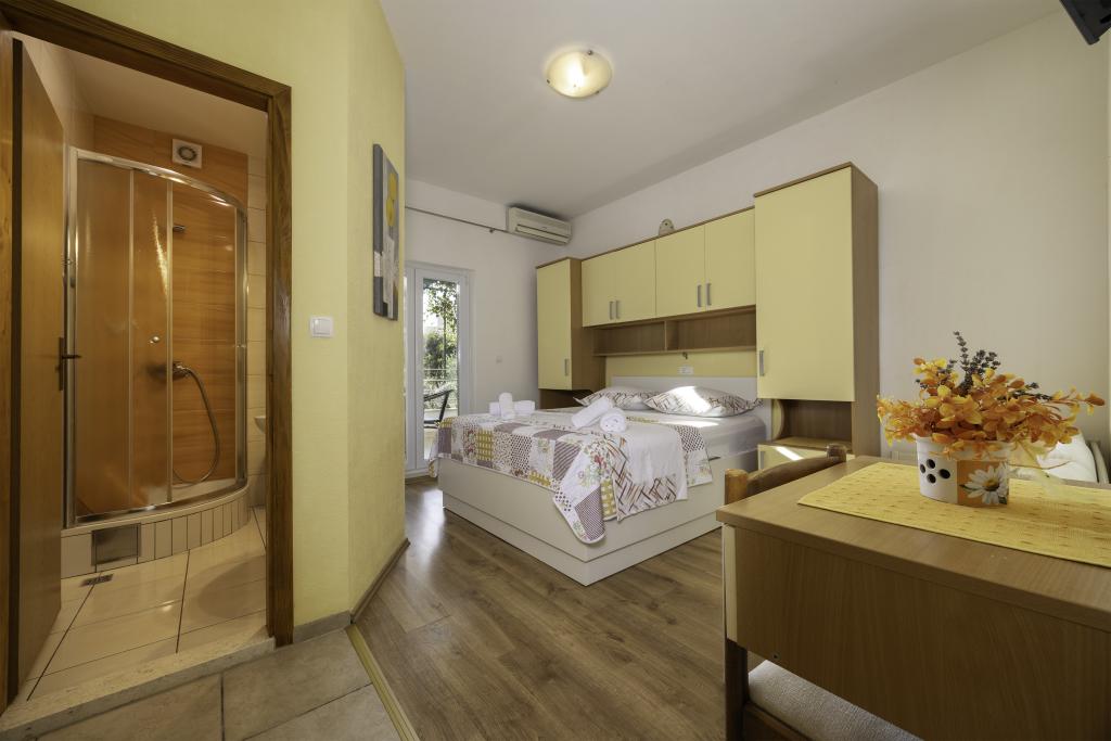 Lejligheden er ren, pænt indrettet, køkkenet er på terrassen, og den har opvaskemaskine. Hver anden dag kommer fru Gita med rene håndklæder. Værterne Gita og Miro bød os velkommen pænt, høflige, kommunikative og altid til tjeneste. Alt i alt er vi meget tilfredse, al ros. Vi vil helt sikkert tage dertil igen.