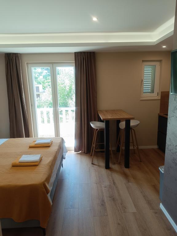 Meget venlige ejere. Studielejligheden har en smuk beliggenhed med fremragende udsigt over havet og Biokovo -bjergene.