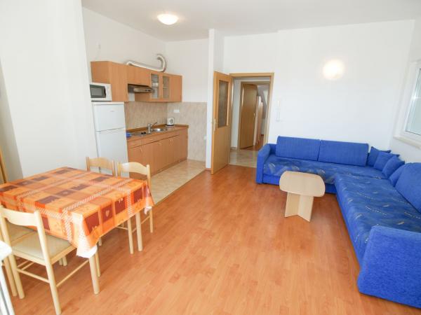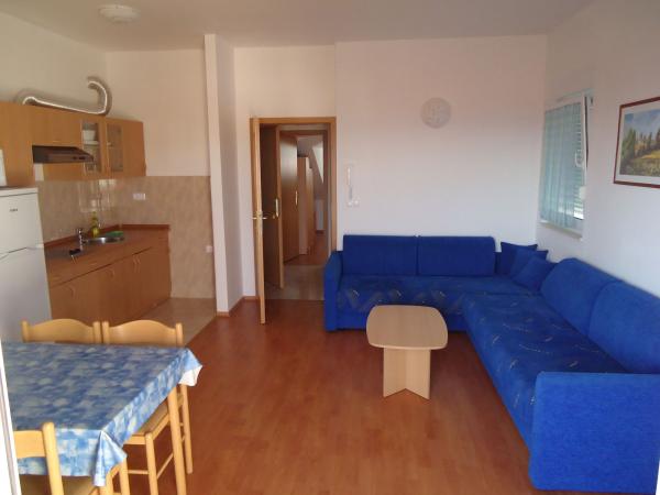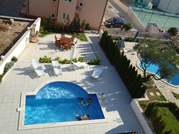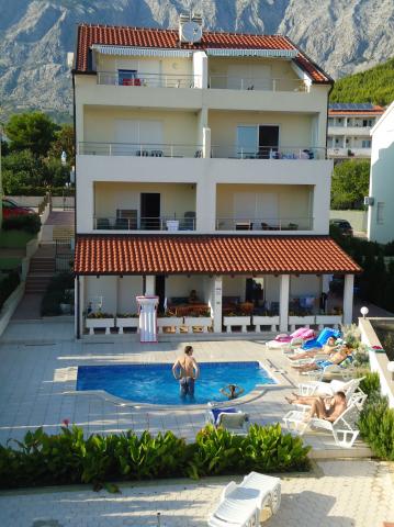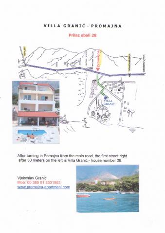 Villa Granić ligger i turistbyen Promajna i smukt anlagte omgivelser, kun 100 meter fra sandstranden med fyrreskov, og er velegnet til børnefamilier. Villaen har sin egen swimmingpool, stor have og lukket parkeringsplads. Hver lejlighed har en stor terrasse med udsigt over havet, et rummeligt bord og stole. Der er 6 restauranter, butikker og legepladser i nærheden. Ved siden af huset er der en sportsbane til basketball og minifodbold, som er gratis at bruge.