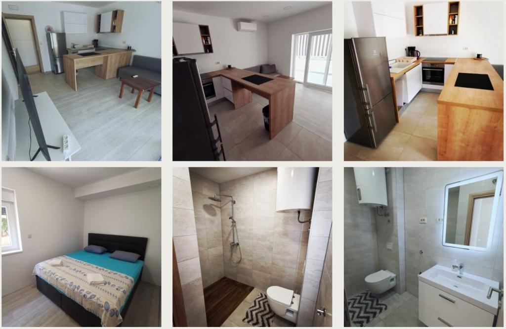 Fine lejligheder med havudsigt og adgang til en pool i en rigtig god beliggenhed, tæt på butikker, strande og restauranter. Hvis du leder efter en lille kroatisk by med fantastiske strande, er dette stedet for dig. Vores lejlighed havde kun et klimaanlæg, og det tog et stykke tid at køle ned, men det var overkommeligt. Flere skåle morgenmadsprodukter til børnene og en hårtørrer ville være nyttigt. Ejeren er på stedet og er altid tilgængelig for at hjælpe.