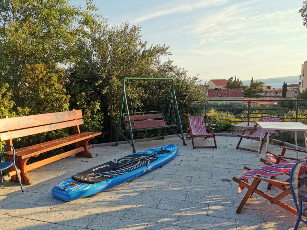 Villaen tilbyder overnatning i fuldt møblerede lejligheder til 2-6 personer. Alle lejligheder har fuldt udstyret køkken, aircondition, wifi, balkon med havudsigt, parkeringsplads foran huset, fri afbenyttelse af swimmingpoolen, grill, have og terrasse i den indhegnede gård. Kæledyr er velkomne mod et gebyr. Vi er kun få minutters gang fra den smukke hovedstrand omgivet af tætte fyrretræer. Aftener er reserveret til en gåtur langs strandpromenaden, der strækker sig 3 km hele vejen til Baška Voda.