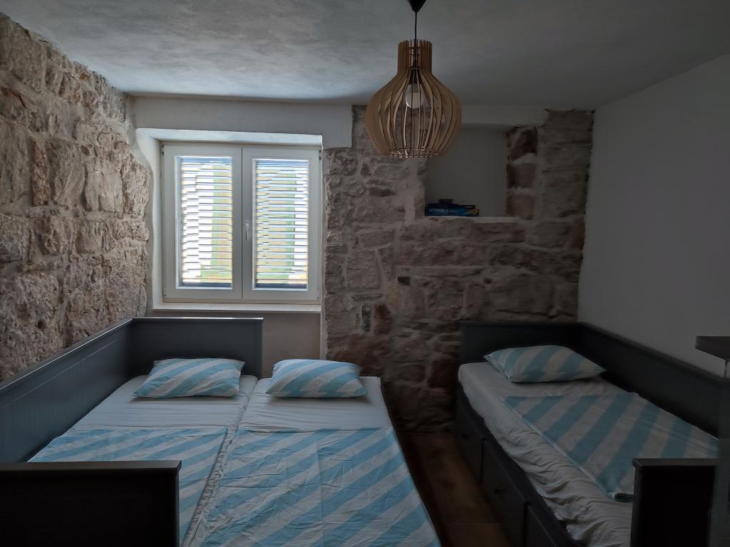Sten, fuldstændig renoveret hus til leje på øen Prvić. Huset er fuldt udstyret med alle apparater (to tv'er, mikroovn, ovn, induktion, køleskab, 2 klimaanlæg, opvaskemaskine, vaskemaskine, strygejern, brødrister, hårtørrer). Det er beliggende i centrum af Prvić Luka, i den gamle bymidte, et nationalt beskyttet kulturmonument. I landsbyen, i umiddelbar nærhed, er der flere restauranter og barer. Byen og øen er en oase af fred, dækket af oliven, fyrretræer, cypresser, vinmarker og dalmatiske autoktone blomster og frugter. Der er flere strande i nærheden af huset i en afstand af 5-10 minutter til fods. Selve huset har 4 etager og har en optimal kapacitet til 6 personer. På sidste sal er der en skøn terrasse med udsigt til 8 mindre øer. Huset ligger 20 m fra havet.