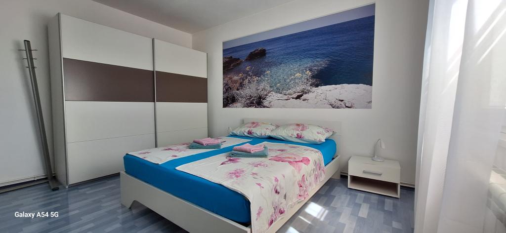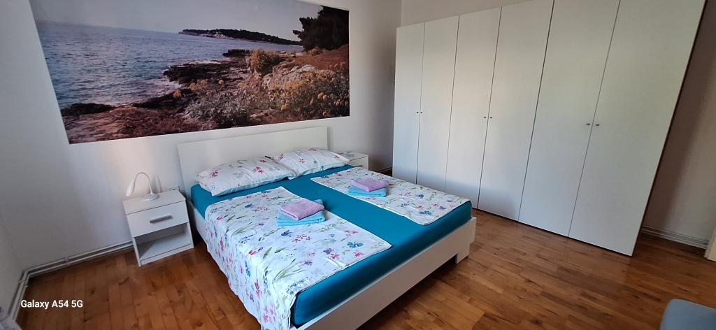 Oplev ægte luksus i vores Art Apartment i Pula, beliggende i smukke Istrien. Denne rummelige lejlighed har plads til op til 6 gæster på 100 kvadratmeter. Den består af 2 soveværelser og 2 badeværelser, perfekt designet til din komfort og afslapning. Stueetagen af huset på 100m2 + 29m2 balkon + 600m2 have med trampolin. Gæsterne har adgang til køkken, spisestue, stue, entré, 2 soveværelser med en dobbeltseng + en ekstra seng i hvert værelse. Stort badeværelse med badekar. Lille badeværelse med bruser. Stor terrasse på 20m2. Udsigt mod skoven.
