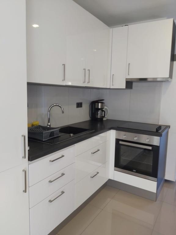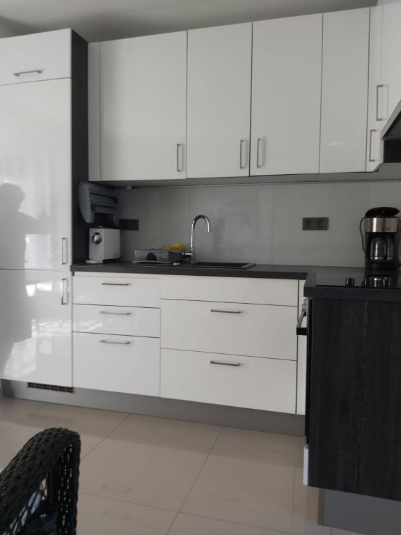 Nye og moderne udstyrede lejligheder i et roligt område, beliggende tredje række fra havet; Ejendommen ligger 2 minutters gang fra centrum og 5 minutters gang fra stranden. Jeg ved, at der er restauranter og andre tjenester for gæster langs stranden. Sportsaktiviteter kan dyrkes med det tilhørende udstyr placeret lige ud til stranden. Og også børns gadgets til sjov og leg. Bemærkning. Strandene er oplyst om natten med en bar, hvor gæsterne kan nyde og slappe af ved havet.