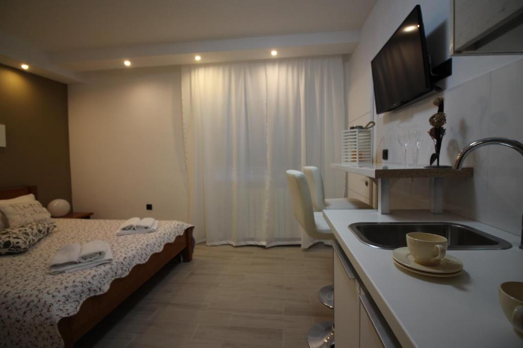 Villa ambiente er beliggende i en rolig del af Pješćana uvala (blindvej) med næsten ingen trafik og støj. Stranden og restauranter er kun 150 meter væk, samt alle andre faciliteter. Vi er tilgængelige for vores gæster 24 timer i døgnet.