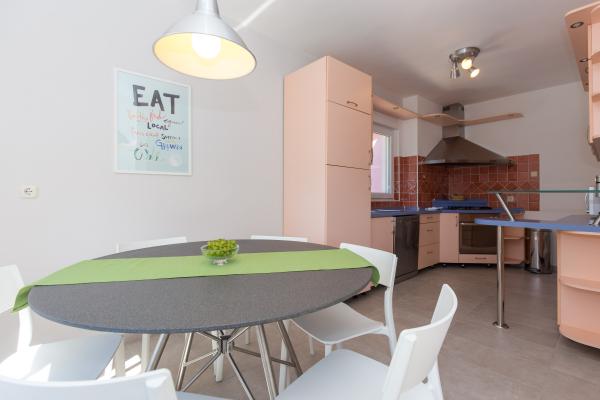 Lejlighed ONE4ALL - COMFORT ligger i Punat på 2. sal i et familiehus med anlagt have og to parkeringspladser. Huset ligger 15 minutters gang fra landsbyens centrum og 5 minutter fra den første strand. Lejligheden består af 2 soveværelser med dobbeltsenge (180*200), 1 soveværelse/arbejdsværelse/legerum til børn med sovesofa (140*200), 3 badeværelser, køkken, spisestue, stue, 2 terrasser og en balkon. Rummelig og fuldt udstyret lejlighed til et behageligt ophold for familie og venner. Velkomst!