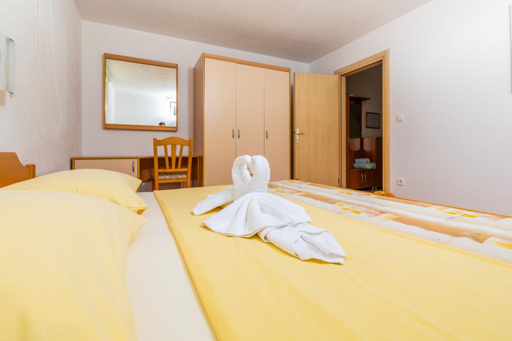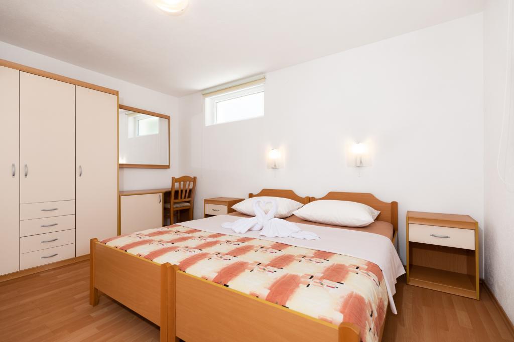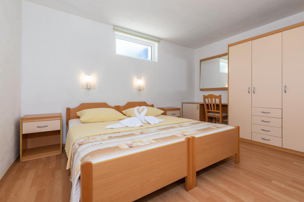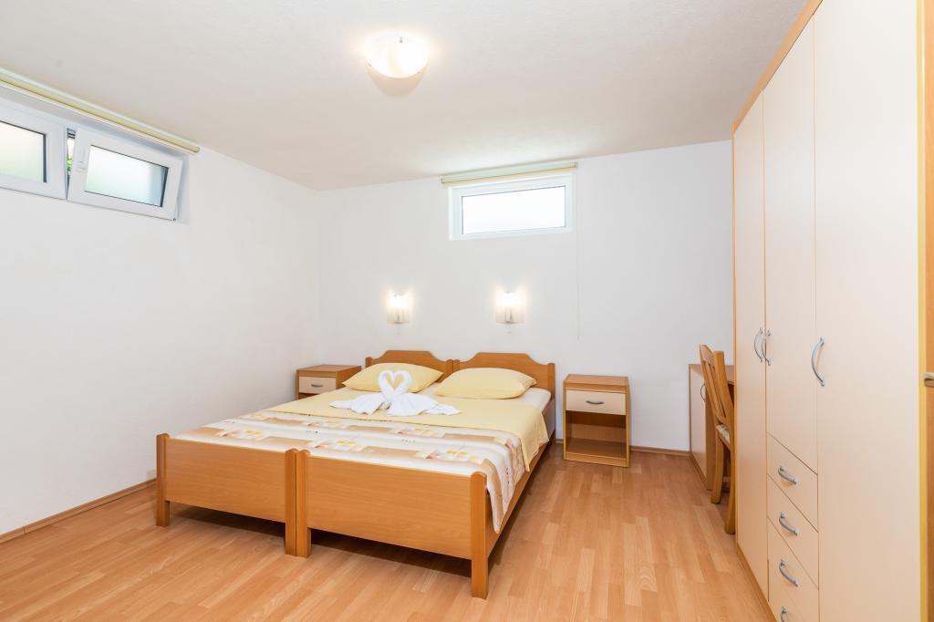 IndkvarteringsenhederFor at foretage en reservation er det nødvendigt at betale et forskud på €100 gennem banken (IBAN), og resten af regningen betales kontant ved ankomst. Ankomst til lejligheden er mulig efter kl. 14.00 og afgang kl. 10.00. Grundprisen i lejligheden er for 2 personer. For hver ekstra person på en ekstra seng stiger prisen med €12/dag (1. maj-14. juli, 21. august-30. september) eller €15/dag (15. juli-20. august). Hver lejlighed har en ekstra seng til 2 personer. Børn op til 3 år bor gratis, hvis de ikke bruger en ekstra seng. Et ophold på op til 3 nætter øger prisen på tjenesten med 30 %. Turistskat er inkluderet i prisen.