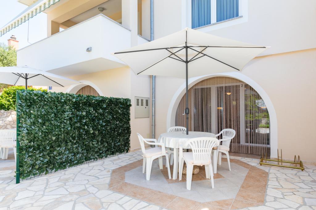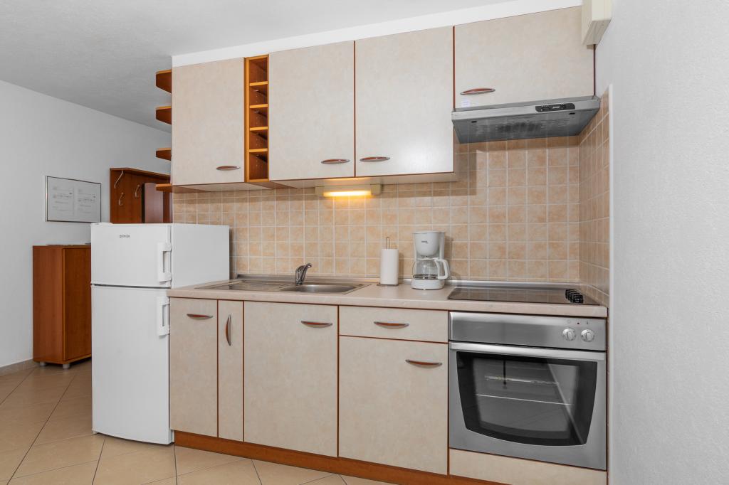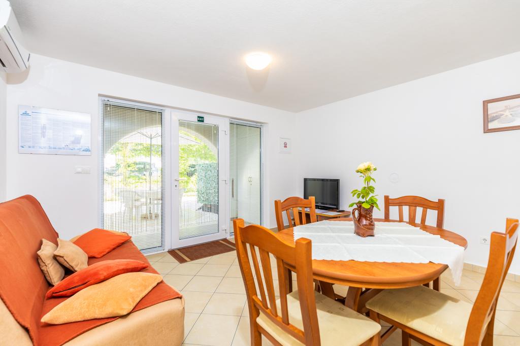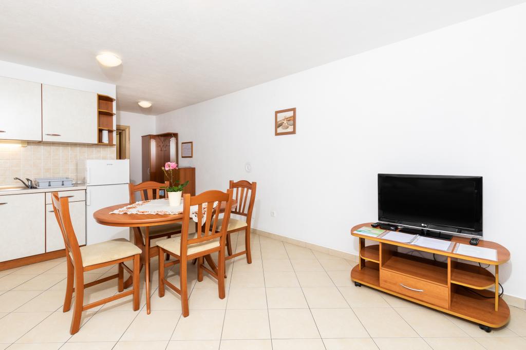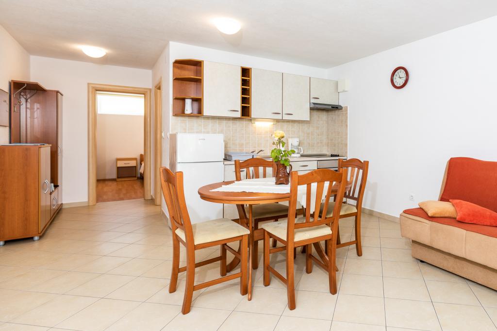IndkvarteringsenhederFor at foretage en reservation er det nødvendigt at betale et forskud på €100 gennem banken (IBAN), og resten af regningen betales kontant ved ankomst. Ankomst til lejligheden er mulig efter kl. 14.00 og afgang kl. 10.00. Grundprisen i lejligheden er for 2 personer. For hver ekstra person på en ekstra seng stiger prisen med €12/dag (1. maj-14. juli, 21. august-30. september) eller €15/dag (15. juli-20. august). Hver lejlighed har en ekstra seng til 2 personer. Børn op til 3 år bor gratis, hvis de ikke bruger en ekstra seng. Et ophold på op til 3 nætter øger prisen på tjenesten med 30 %. Turistskat er inkluderet i prisen.