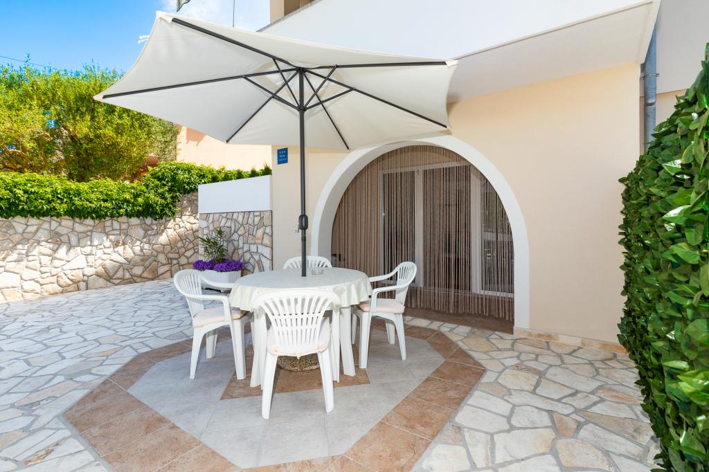 Lejligheden er meget pæn, pæn og moderne, terrasse foran lejligheden vidunderligt. Værterne er søde og hjælpsomme! 15 min gang til stranden. Tilfredse og meget glad for at vende tilbage igen!