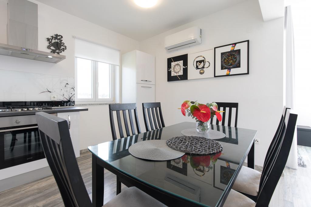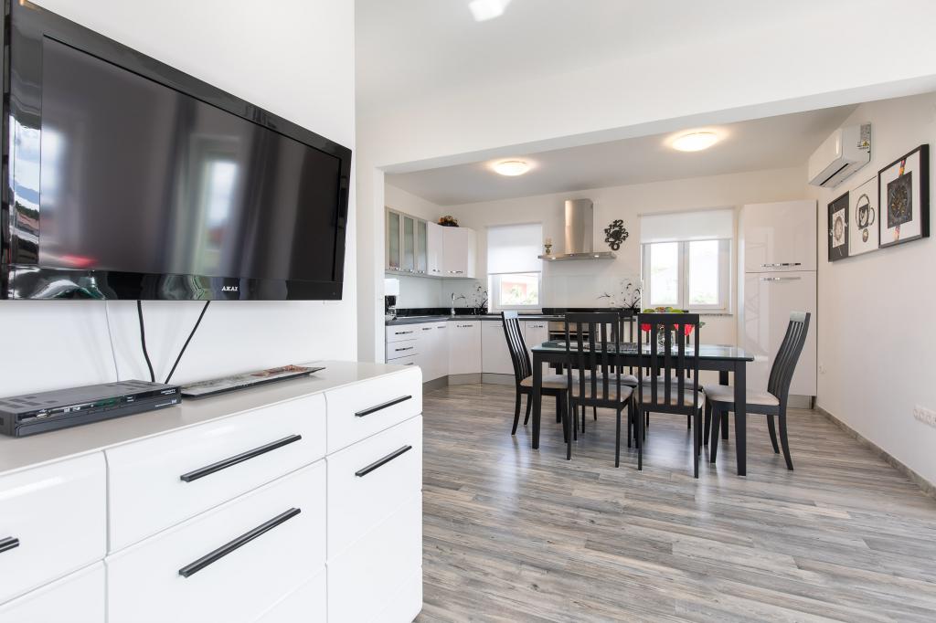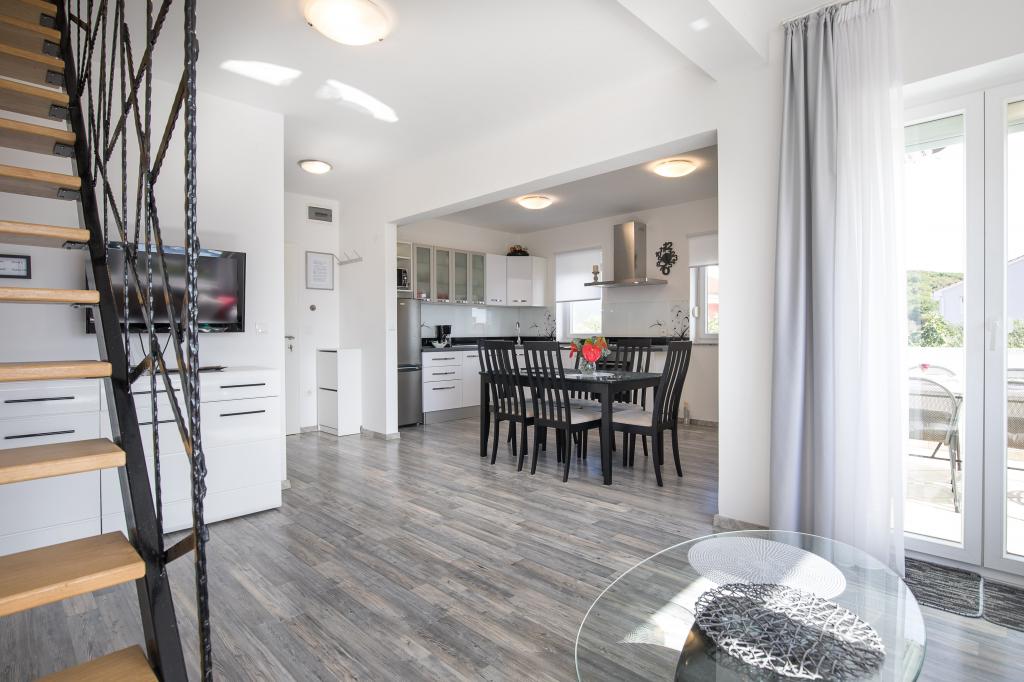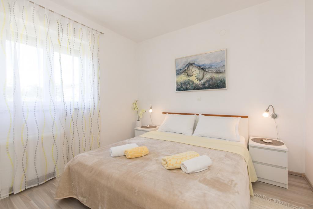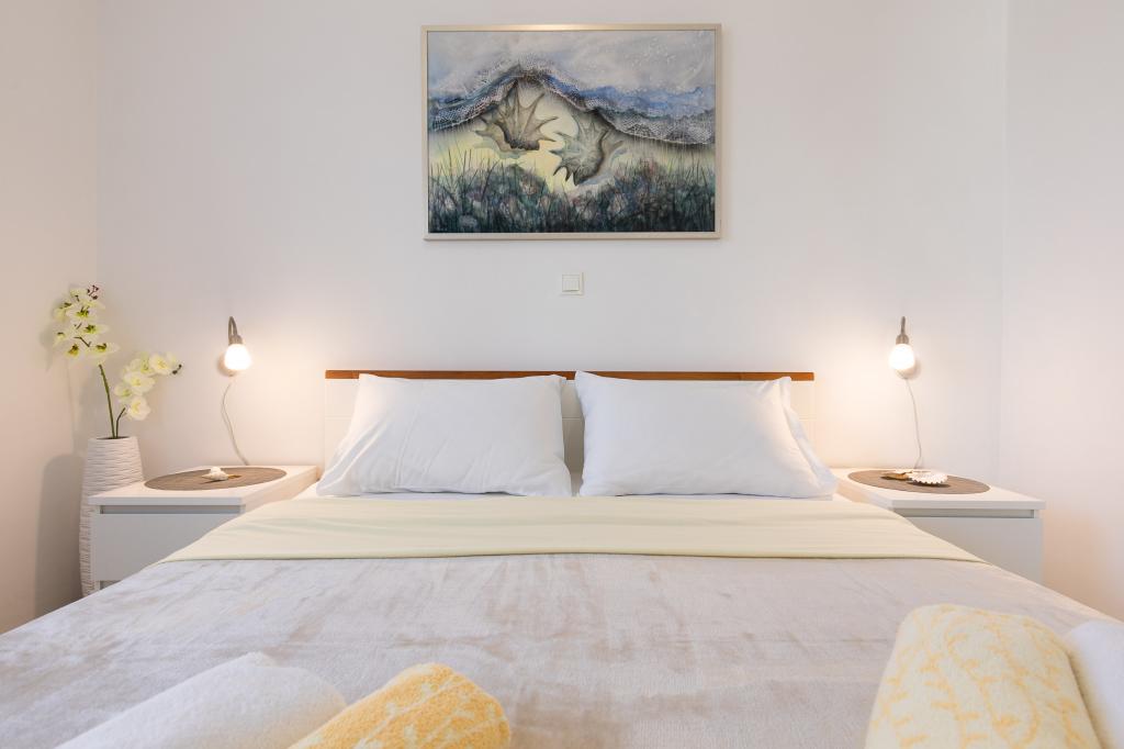 Vores lejligheder er beliggende i et nybygget familiehus i en rolig del af Punat på øen Krk. De er moderne og funktionelt udstyret og giver et behageligt og fredeligt ophold. Alle værelser har aircondition, så opholdet er behageligt selv på de varmeste dage. Fra balkonen er der en smuk udsigt over olivenlundene og havet. Middelhavshaven er udstyret med komfortable liggestole. I en særlig hyggelig aftenatmosfære byder den vores gæster på uforglemmelige sommeraftener. Det er muligt at bruge en grill. Alle faciliteter: stranden, restauranter og faciliteter i centrum kan nås på 15 minutter. gåture. Butikken ligger få minutters gang væk. Der tilbydes gratis privat parkering foran huset. Ejerne taler kroatisk, italiensk og engelsk.