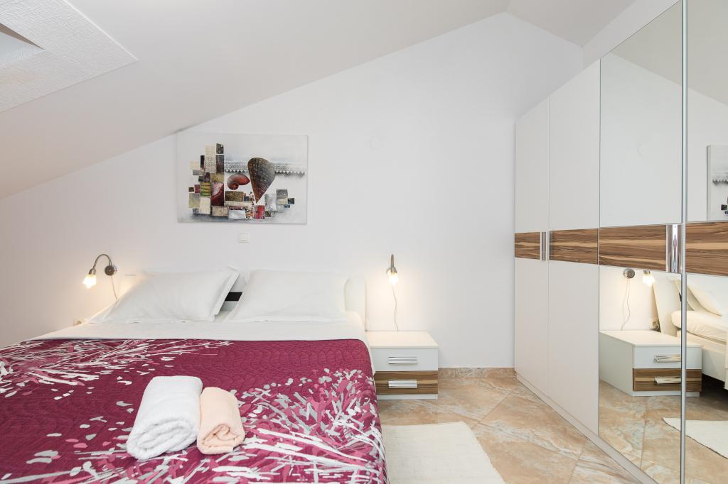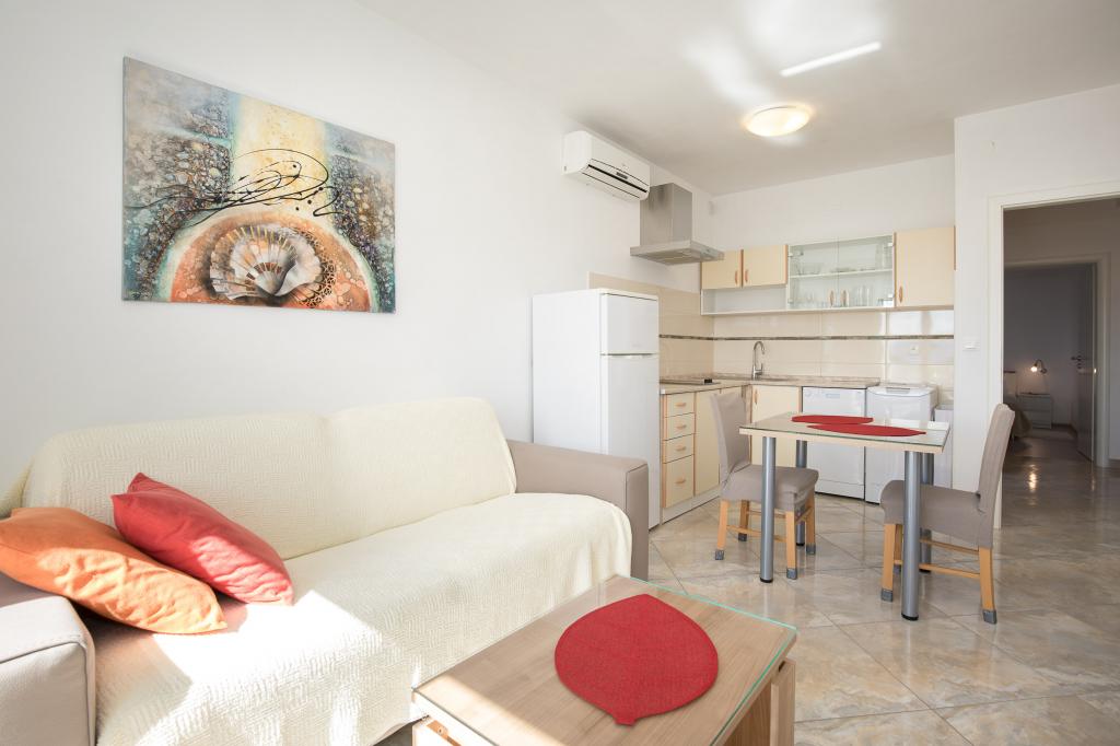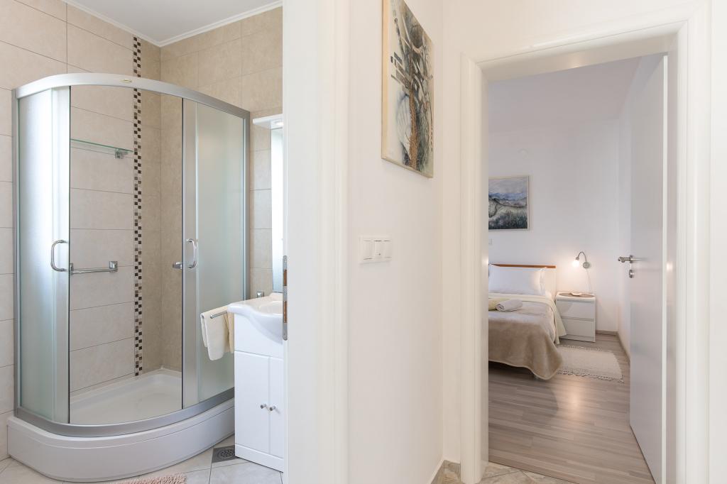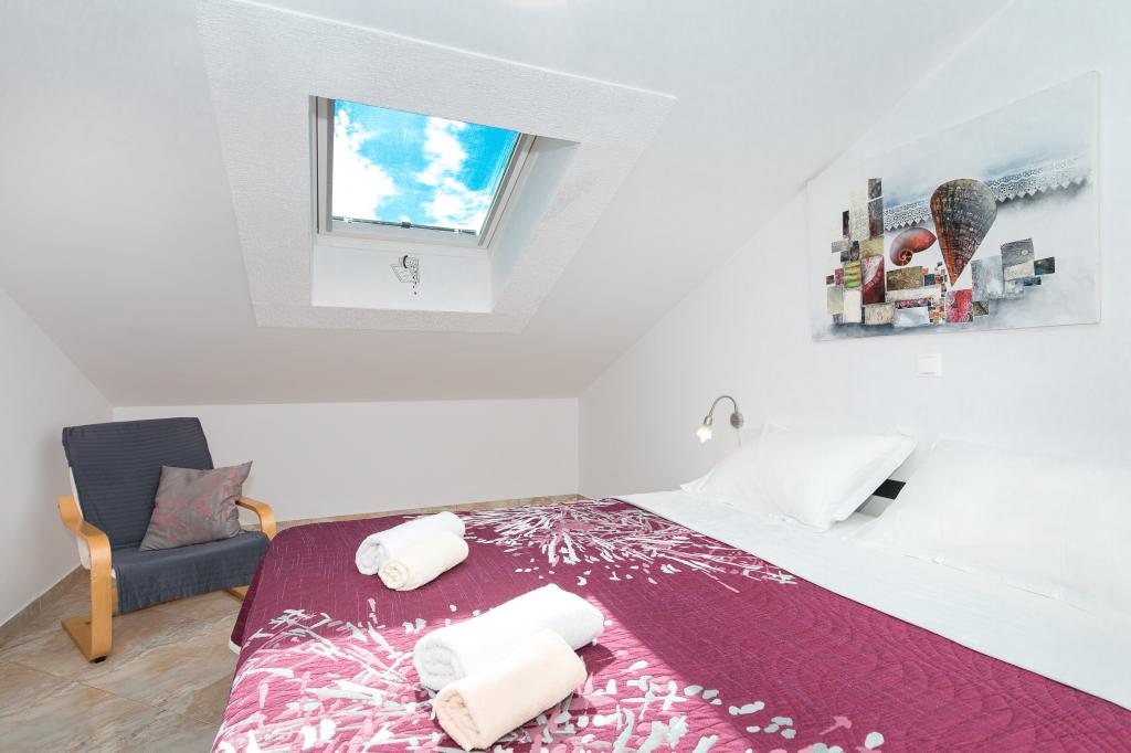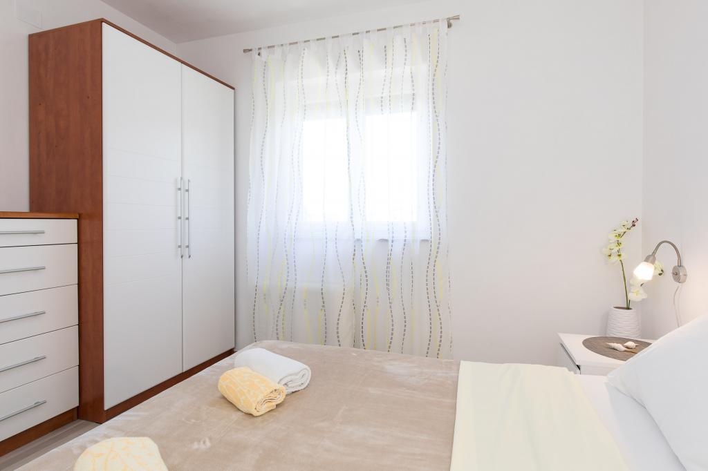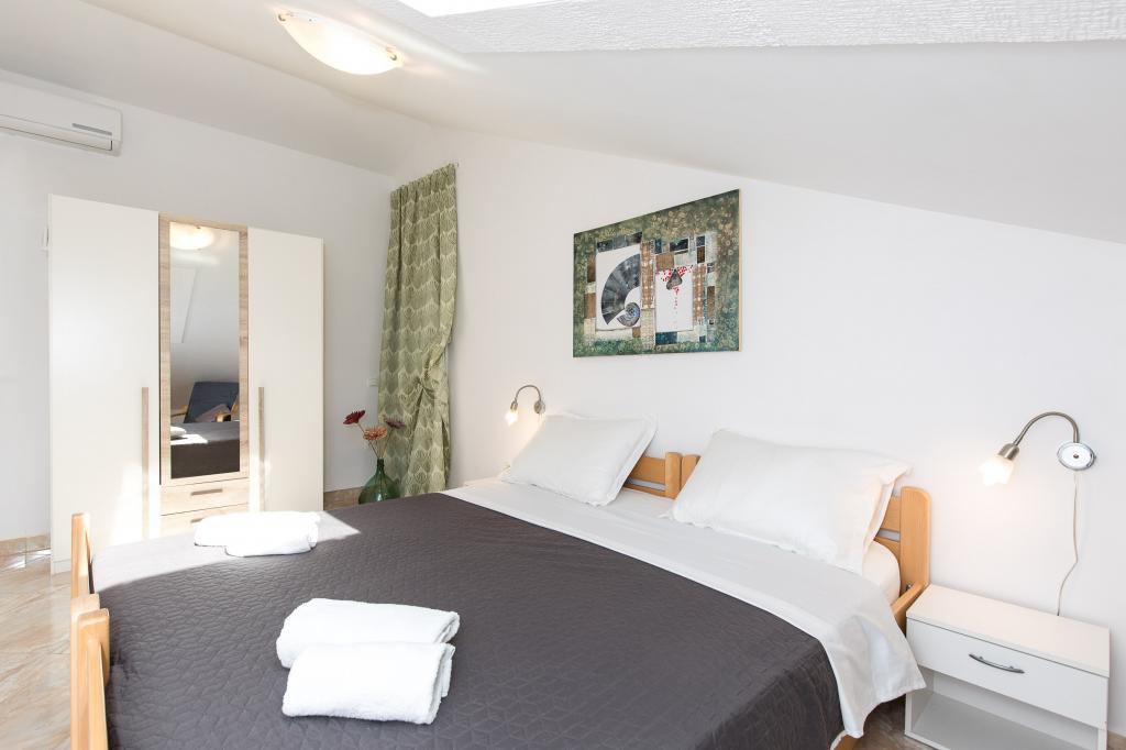 Vores lejligheder er beliggende i et nybygget familiehus i en rolig del af Punat på øen Krk. De er moderne og funktionelt udstyret og giver et behageligt og fredeligt ophold. Alle værelser har aircondition, så opholdet er behageligt selv på de varmeste dage. Fra balkonen er der en smuk udsigt over olivenlundene og havet. Middelhavshaven er udstyret med komfortable liggestole. I en særlig hyggelig aftenatmosfære byder den vores gæster på uforglemmelige sommeraftener. Det er muligt at bruge en grill. Alle faciliteter: stranden, restauranter og faciliteter i centrum kan nås på 15 minutter. gåture. Butikken ligger få minutters gang væk. Der tilbydes gratis privat parkering foran huset. Ejerne taler kroatisk, italiensk og engelsk.