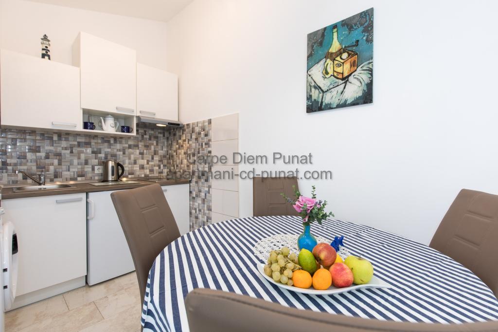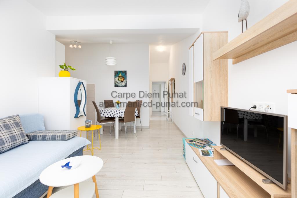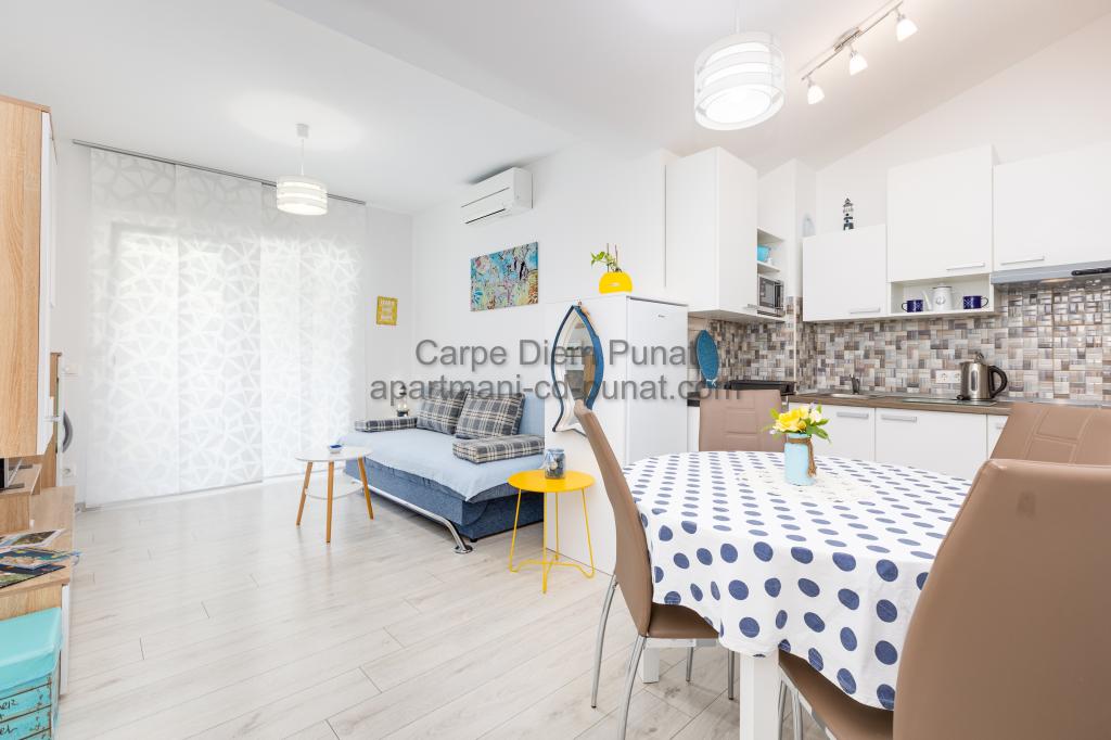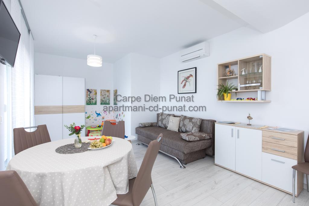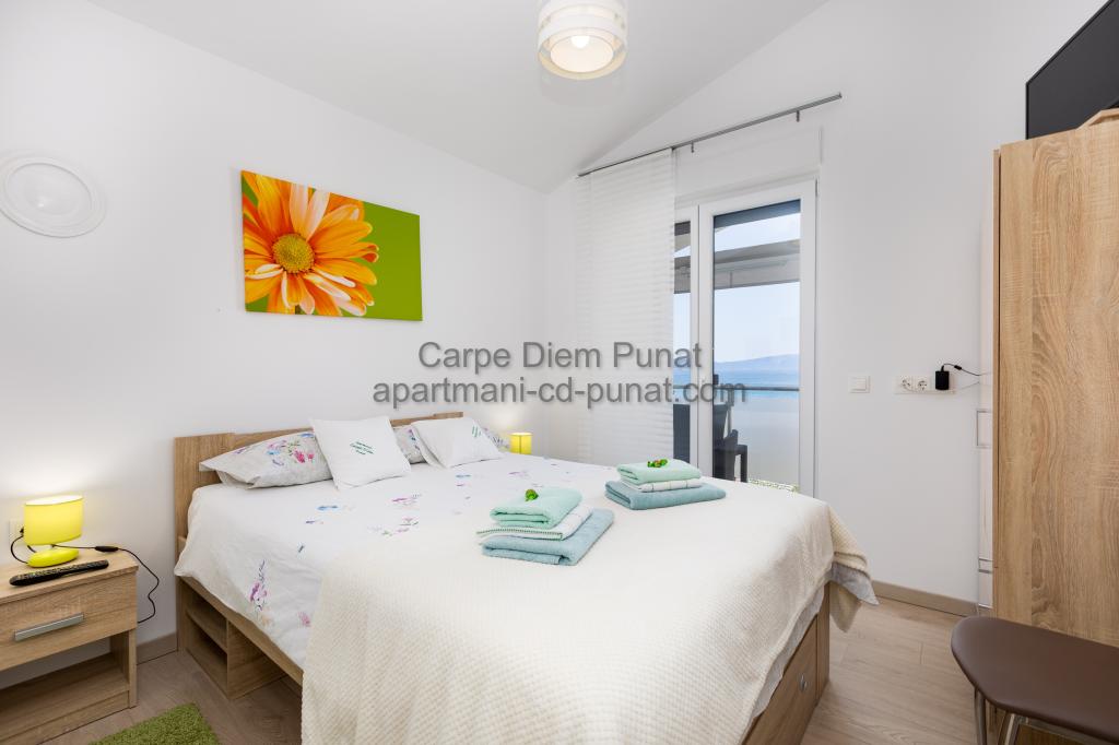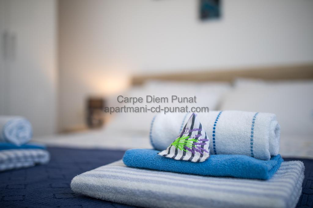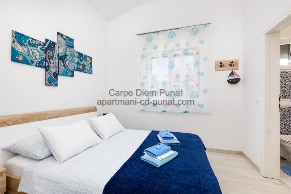 Carpe Diem Apartments er beliggende i landsbyen Punat tæt på de smukke strande Punat. Vi tilbyder to suiter og et værelse - det samlede maksimale kapacitet på 12 personer. Lejlighederne ligger på første sal i et nyt hus. Herunder fuld køkkenredskaber og bestik, køleskab, el-komfur, mikroovn, kaffemaskine. Desuden er lejlighederne udstyret med sengelinned og håndklæder. Prisen inkluderer parkering, Wi-Fi og aircondition i alle rum. Til stranden har du 40m eller 1 minut væk. En afslappet gåtur på 15 minutter vil du komme til centrum af Punat, hvor du vil finde butikker, apotek, posthus, bank, restauranter, bagerier, fisk og lignende. I nærheden af huset er en restaurant støj.