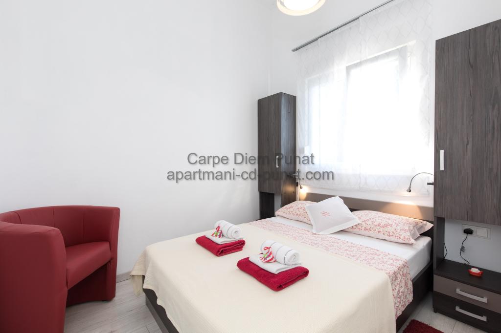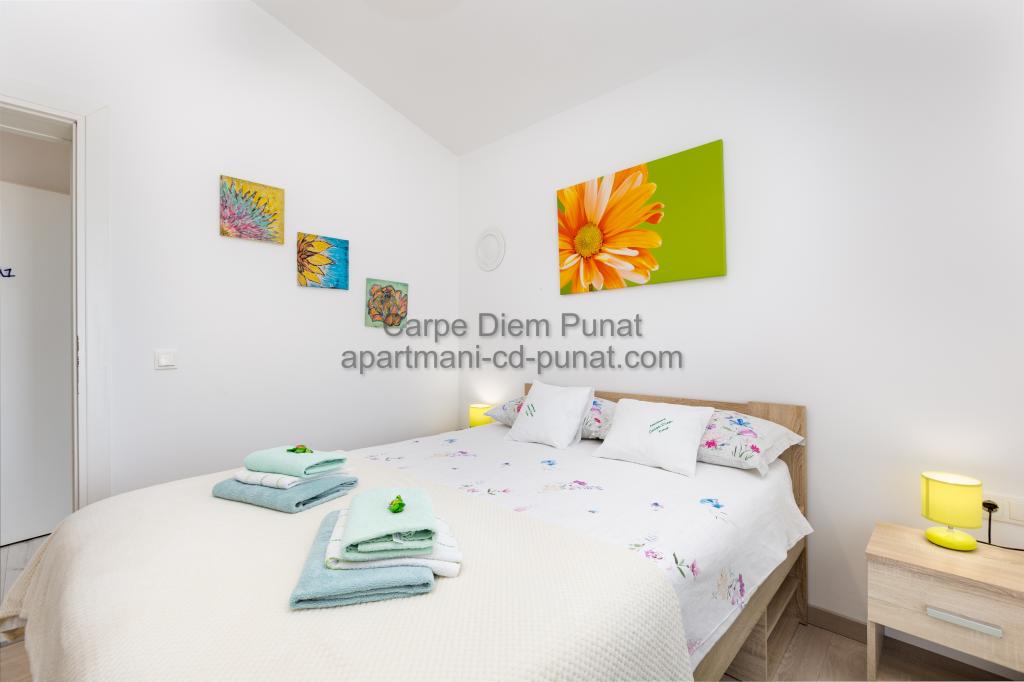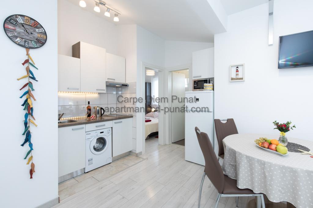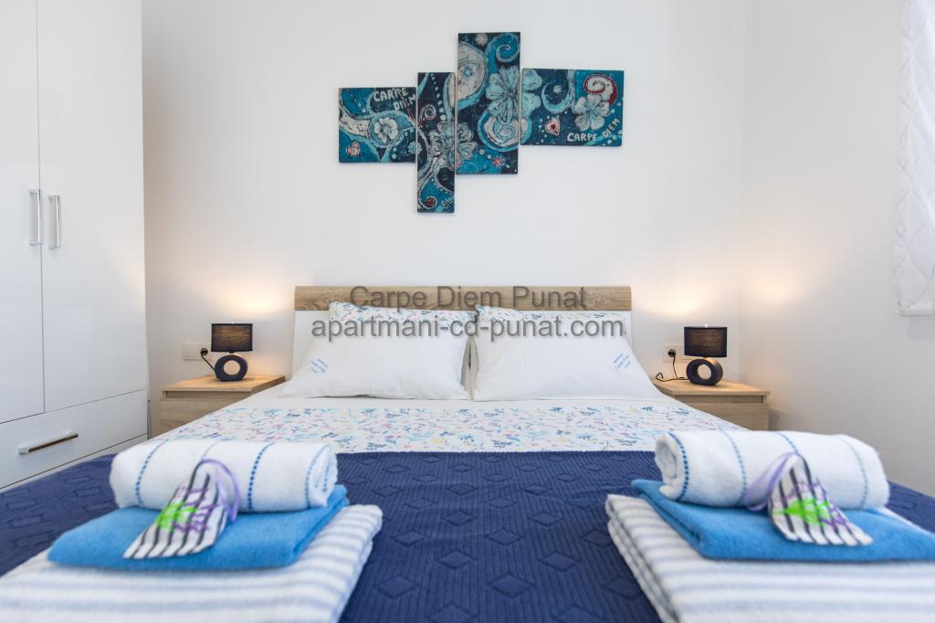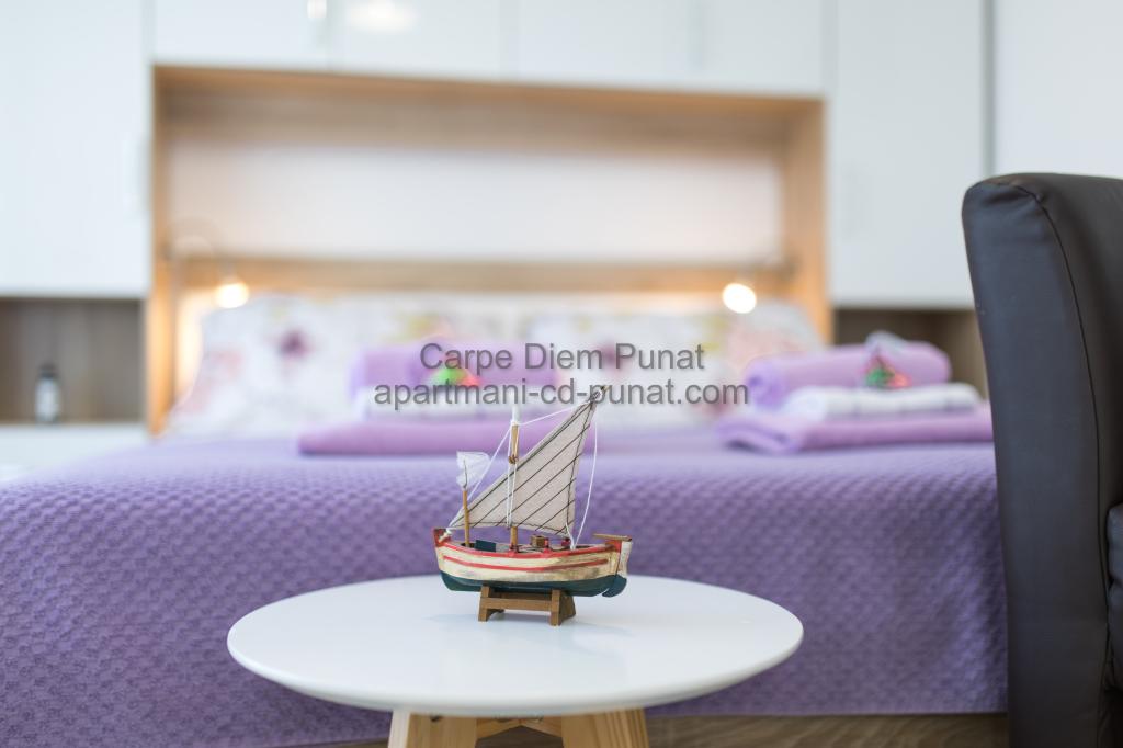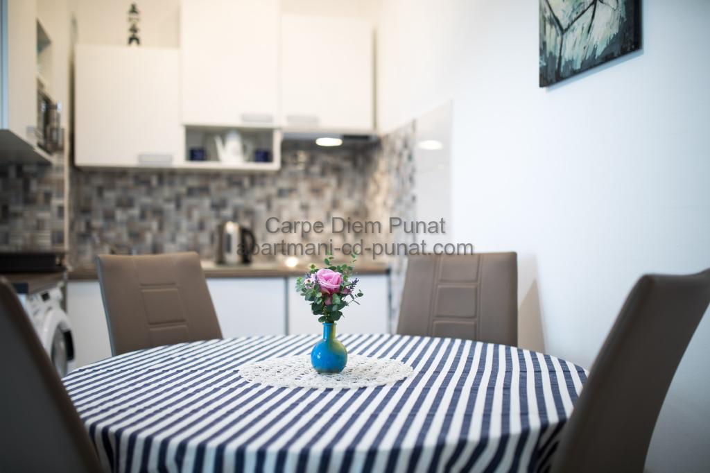 Carpe Diem Apartments er beliggende i landsbyen Punat tæt på de smukke strande Punat. Vi tilbyder to suiter og et værelse - det samlede maksimale kapacitet på 12 personer. Lejlighederne ligger på første sal i et nyt hus. Herunder fuld køkkenredskaber og bestik, køleskab, el-komfur, mikroovn, kaffemaskine. Desuden er lejlighederne udstyret med sengelinned og håndklæder. Prisen inkluderer parkering, Wi-Fi og aircondition i alle rum. Til stranden har du 40m eller 1 minut væk. En afslappet gåtur på 15 minutter vil du komme til centrum af Punat, hvor du vil finde butikker, apotek, posthus, bank, restauranter, bagerier, fisk og lignende. I nærheden af huset er en restaurant støj.