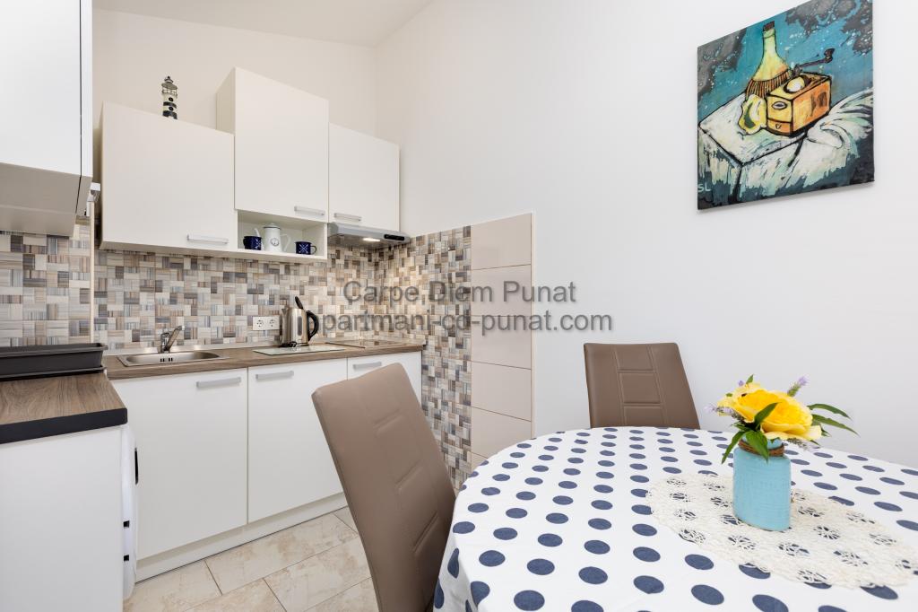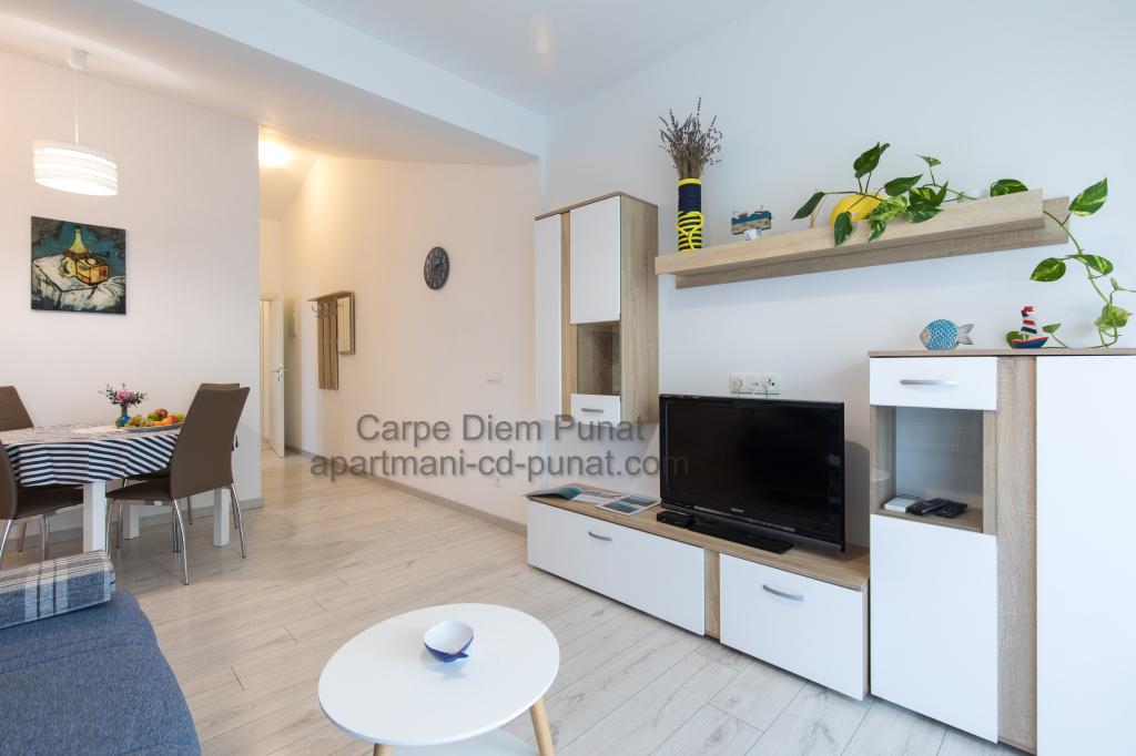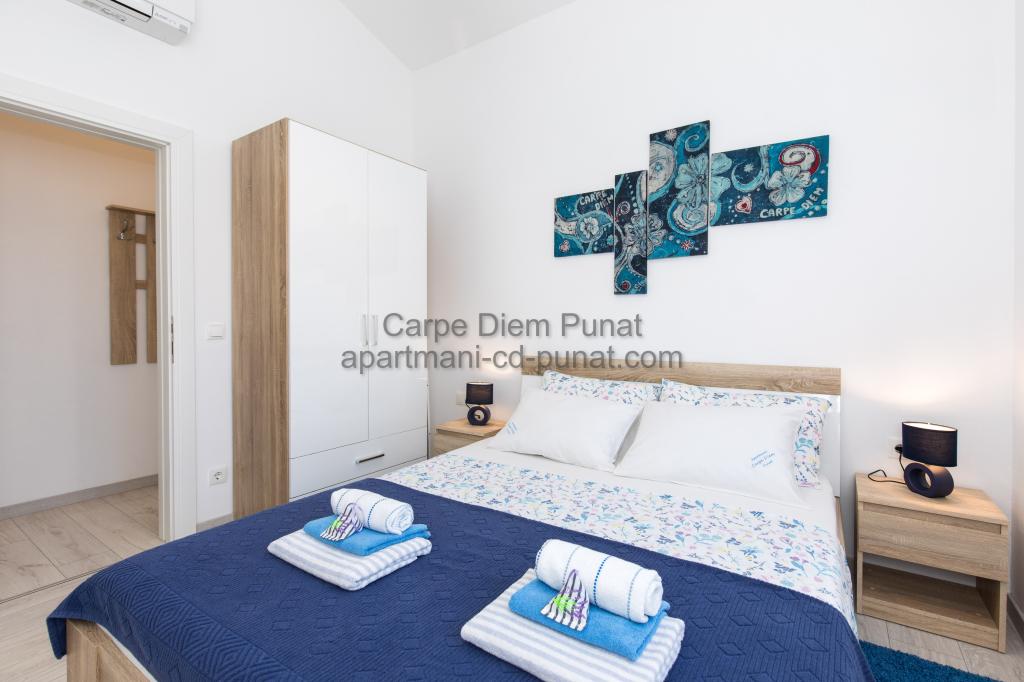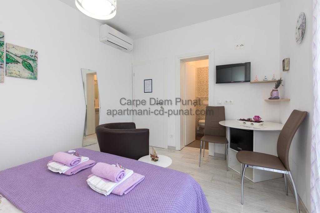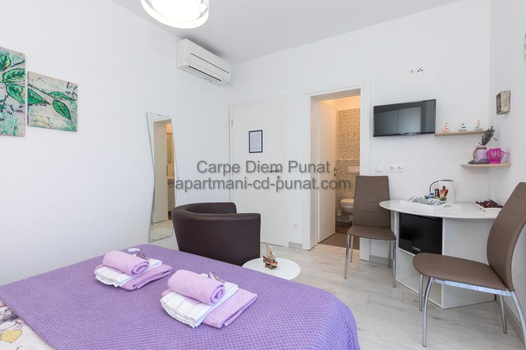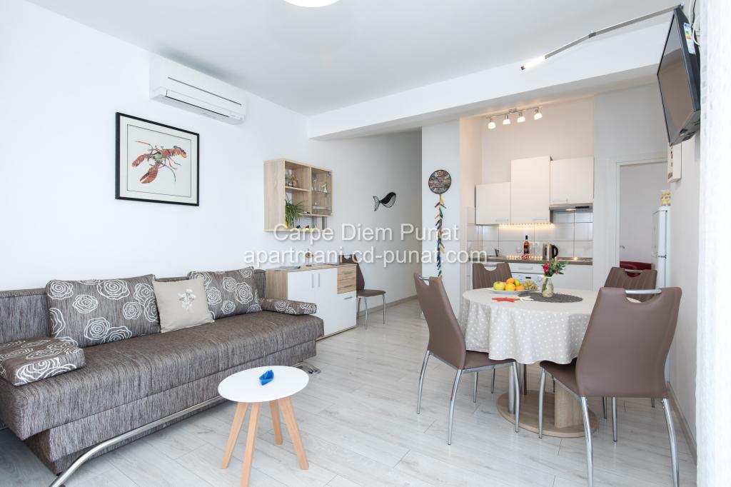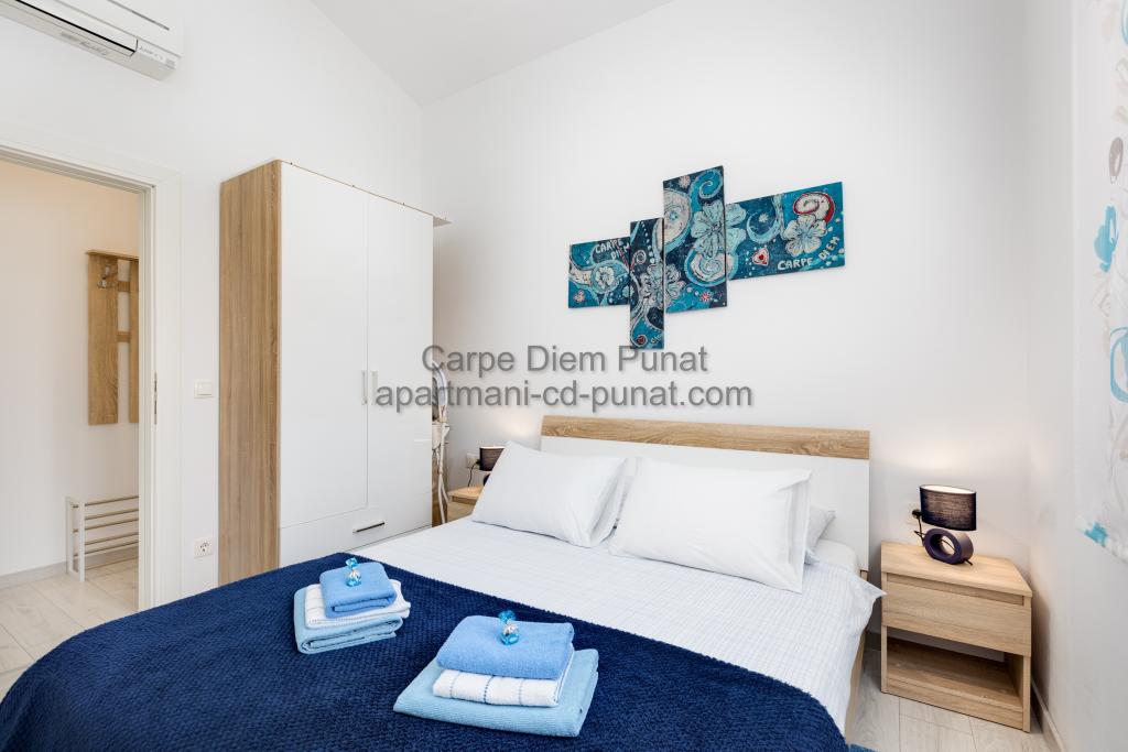 Carpe Diem Apartments er beliggende i landsbyen Punat tæt på de smukke strande Punat. Vi tilbyder to suiter og et værelse - det samlede maksimale kapacitet på 12 personer. Lejlighederne ligger på første sal i et nyt hus. Herunder fuld køkkenredskaber og bestik, køleskab, el-komfur, mikroovn, kaffemaskine. Desuden er lejlighederne udstyret med sengelinned og håndklæder. Prisen inkluderer parkering, Wi-Fi og aircondition i alle rum. Til stranden har du 40m eller 1 minut væk. En afslappet gåtur på 15 minutter vil du komme til centrum af Punat, hvor du vil finde butikker, apotek, posthus, bank, restauranter, bagerier, fisk og lignende. I nærheden af huset er en restaurant støj.