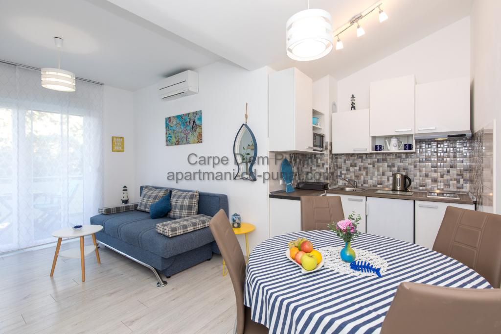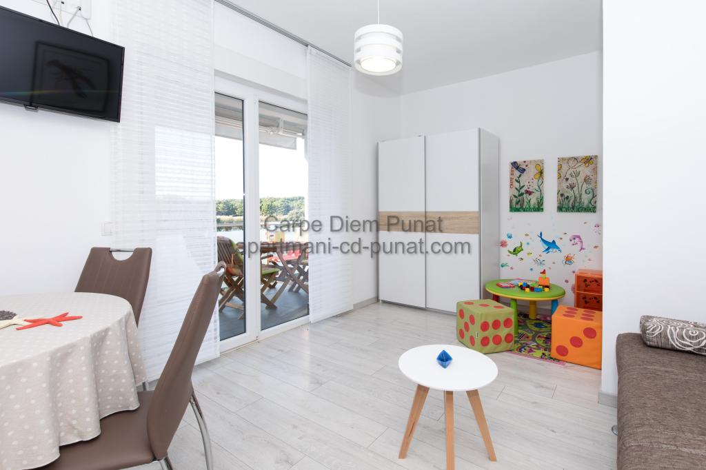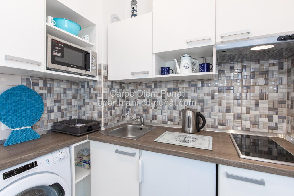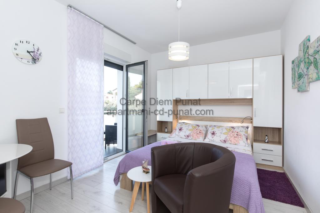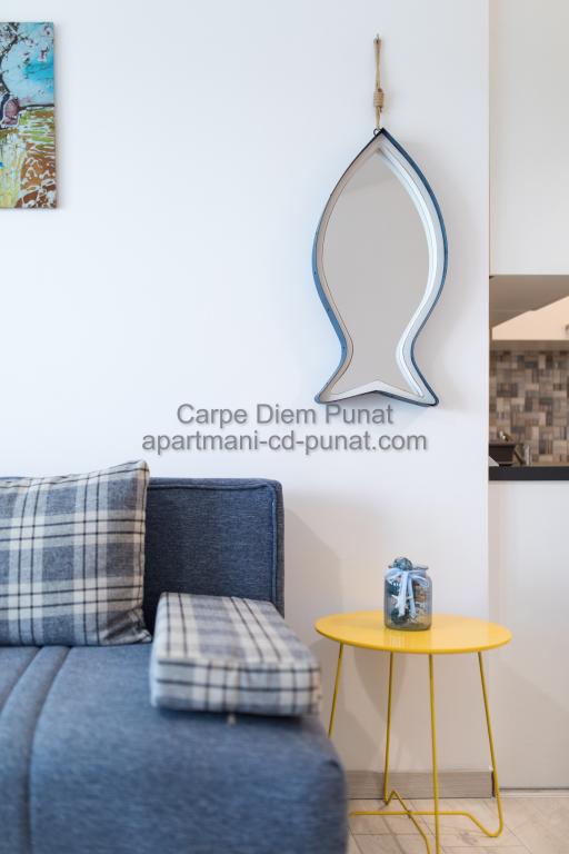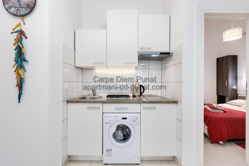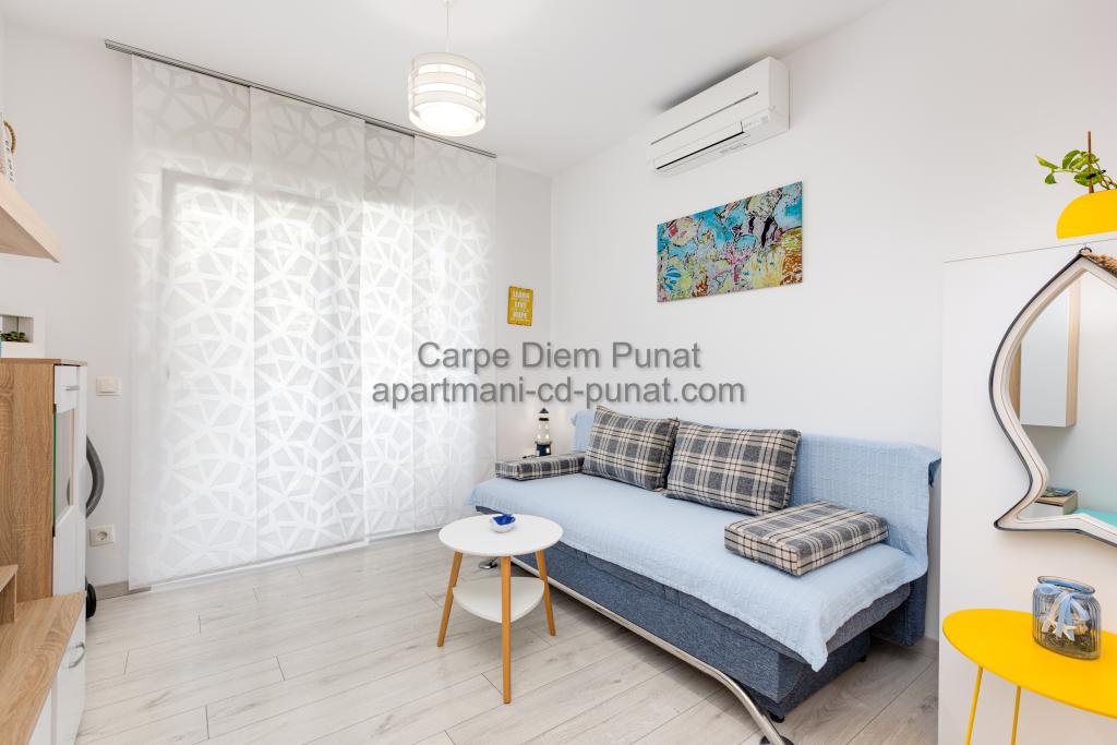 Carpe Diem Apartments er beliggende i landsbyen Punat tæt på de smukke strande Punat. Vi tilbyder to suiter og et værelse - det samlede maksimale kapacitet på 12 personer. Lejlighederne ligger på første sal i et nyt hus. Herunder fuld køkkenredskaber og bestik, køleskab, el-komfur, mikroovn, kaffemaskine. Desuden er lejlighederne udstyret med sengelinned og håndklæder. Prisen inkluderer parkering, Wi-Fi og aircondition i alle rum. Til stranden har du 40m eller 1 minut væk. En afslappet gåtur på 15 minutter vil du komme til centrum af Punat, hvor du vil finde butikker, apotek, posthus, bank, restauranter, bagerier, fisk og lignende. I nærheden af huset er en restaurant støj.