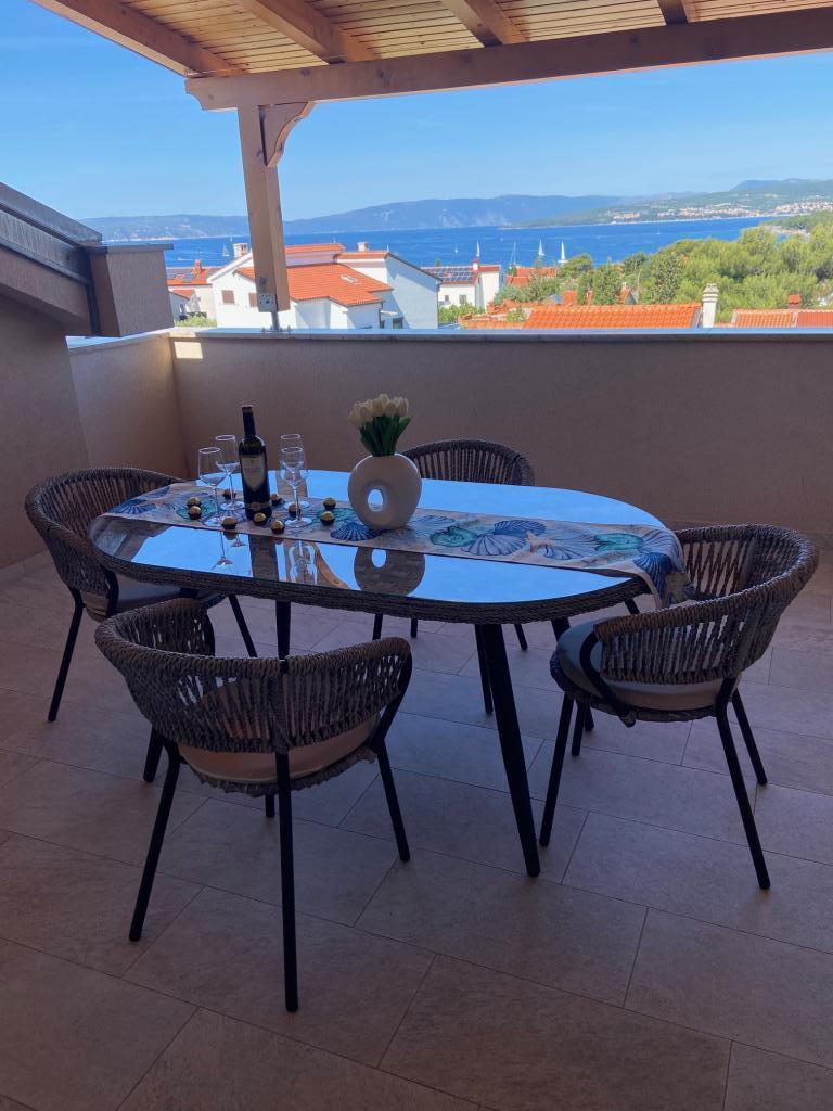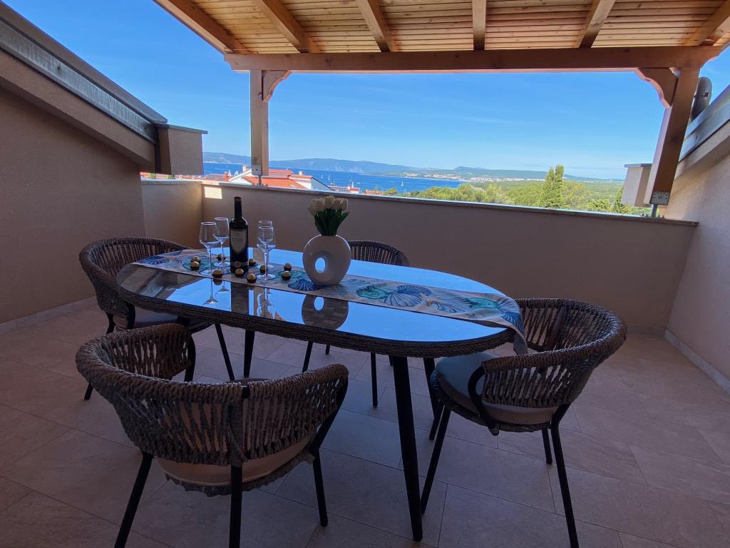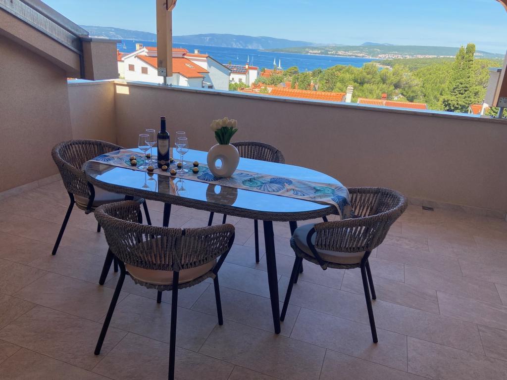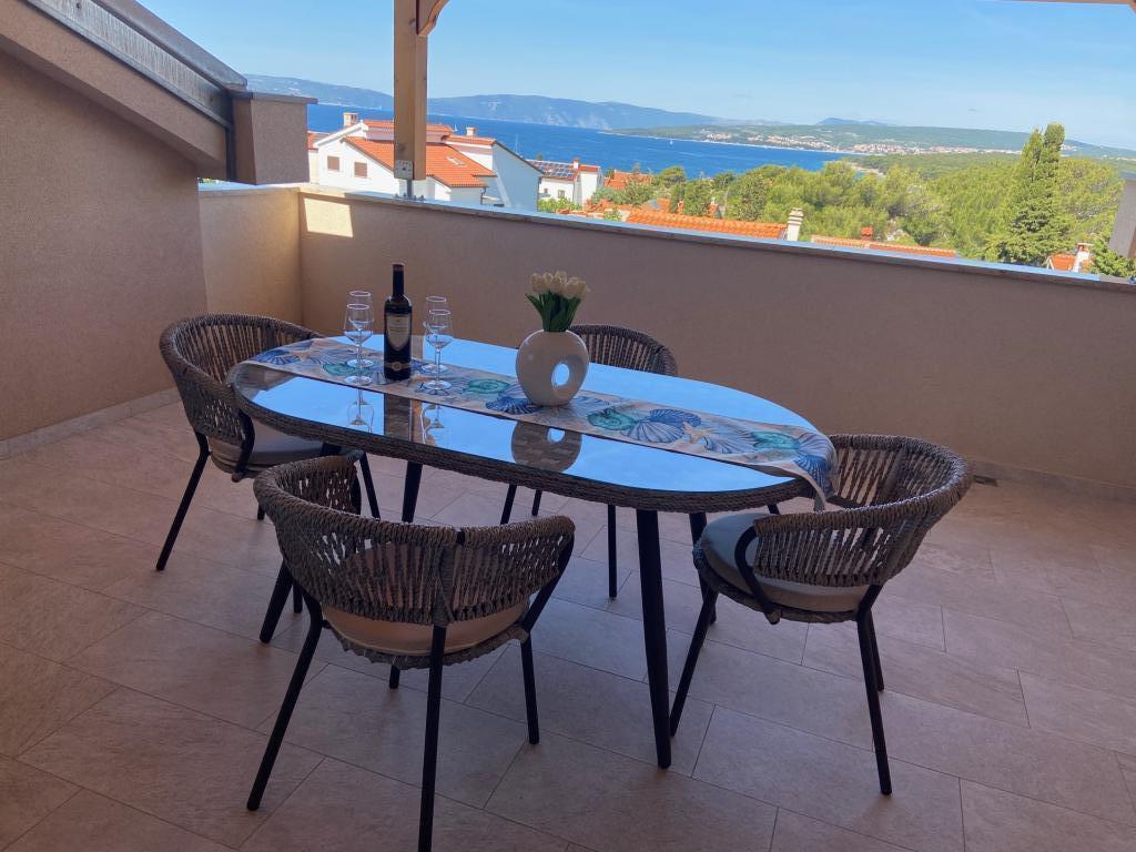 Jeg lejer lejligheder i Puntu - øen Krk. Fritliggende nyt hus, har 4 lejligheder. 2 store til 4 2 personer. Et på loftet med havudsigt og en stor stueetage. 2 små lejligheder til 2 1 personer, en på loftet med havudsigt og en i stueetagen. De store lejligheder har to soveværelser, et badeværelse med bruser og et køkken med spiseplads og en stor terrasse. De små lejligheder har et soveværelse, et badeværelse med bruser, et køkken med spiseplads og en terrasse Lejlighederne er udstyret med aircondition, satellit-tv, opvaskemaskine, vaskemaskine (delt), køleskab med fryser, ovn, keramisk kogeplade, mikrobølgeovn ... Foran huset er der grill på skoven. Egen parkeringsplads. Internet.