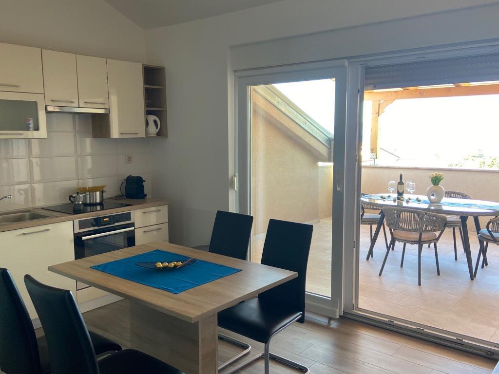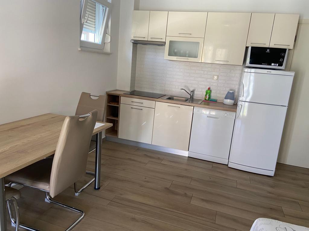 Som familie ledte vi efter en 5-6 personers lejlighed og fandt denne fremragende lejlighed. Placeringen er god, selvom du skal gå et par meter til stranden, men lejligheden er virkelig fantastisk. (For os var det cirka 10-12 minutter, afhængigt af hvor hurtigt du går. Vi kan anbefale dette til alle. I dette nye hus er alle værelser rene og veludstyrede. Vi fik også lov til at bruge en vaskemaskine i huset. Klimaanlægget er bestemt meget godt for alle værelser i juli. Betjeningen er meget god. Vi kunne også forestille os at tage på ferie her igen. Vi savnede en lille ting: et lille bord eller en hylde, hvor du kan placere dine nøgler og mobiltelefoner i indgangspartiet, men det er bestemt anderledes for alle. Højdepunktet var da fødselsdagsbørnene fik deres egen kage, det var en sand overraskelse !!! Takket være Mirjana og hendes familie kunne vi også tale tysk med udlejerens familiemedlem, det var meget nyttigt. Vi boede i denne lejlighed i 2 uger i juli 2021. Mange hilsner til Mirjana og os andre, Janzen familie