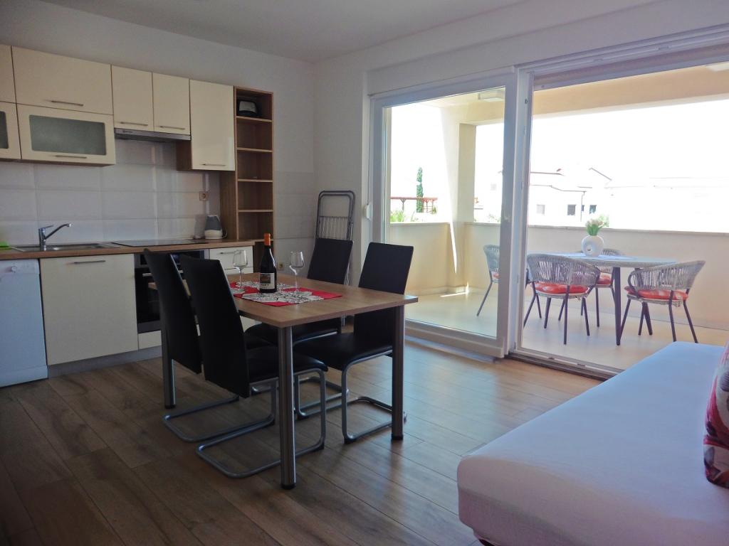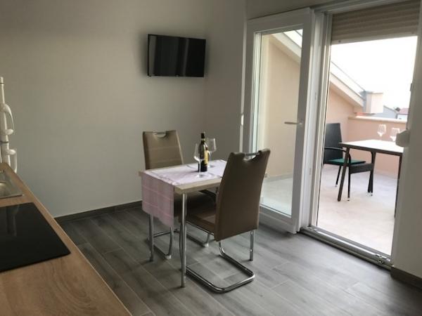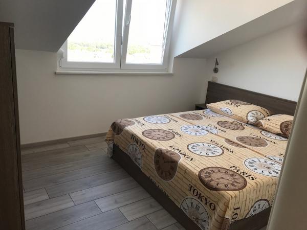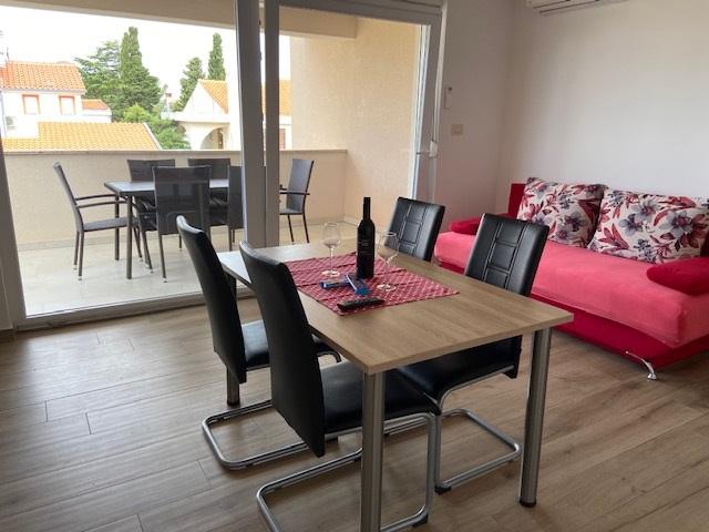 Lejligheden og hele huset er meget pæn. Alt er nyt og rent, lejligheden har alt hvad du har brug for, fra opvaskemaskiner til håndsæbe, børste, kost ... Terrassen er super praktisk. Stranden og byens centrum ligger i nærheden. Vi havde også et sted at rydde op i cyklerne. Fru. Mirjana er fantastisk, hun var vært for os pænt.