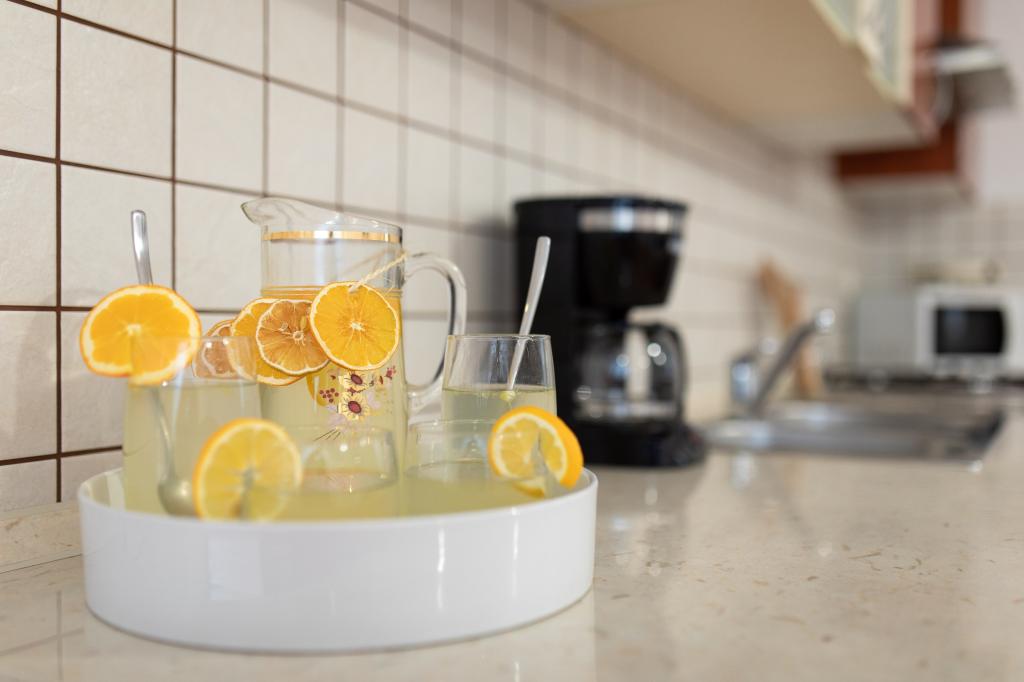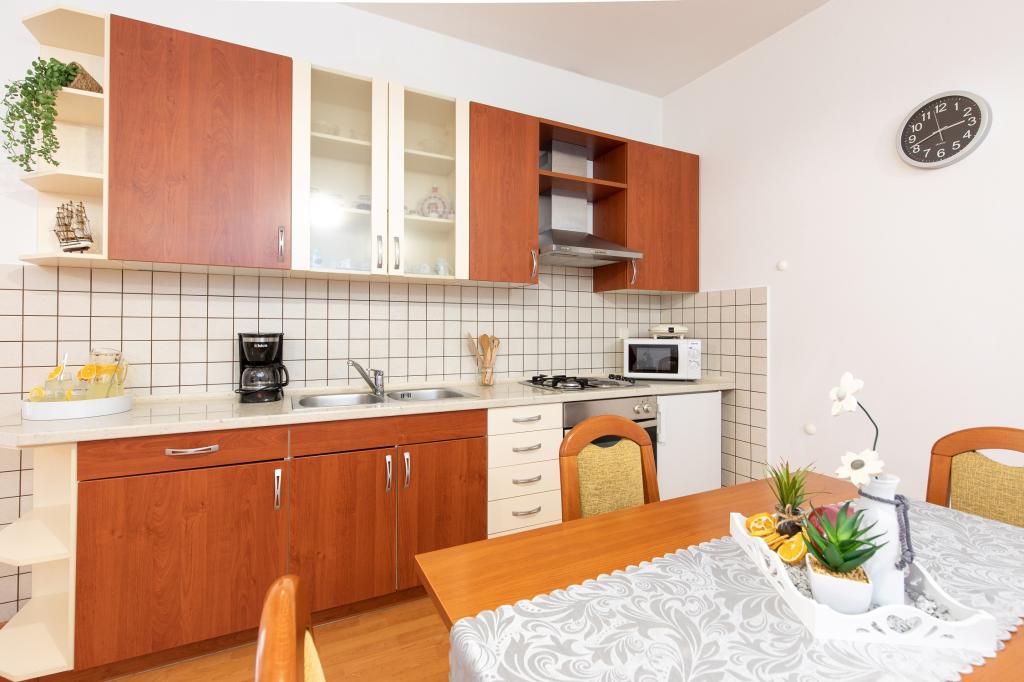 Turistskat er inkluderet i prisen.Værterne byder velkommen og tager imod deres gæster. For gæster, der kommer med egen speedbåd, tilbyder vi en plads til speedbåden 150 m fra lejligheden samt parkering til speedbådstraileren. Parkering til traileren er gratis. Inden for to minutters gang finder man restauranter, konditorier, pizzeriaer, barer, et apotek, havnefogedens kontor og butikker. En velkomstdrink venter dig ved ankomst til lejligheden. Vi står altid til rådighed. Du kan kontakte os på mobilnummeret 38598361580, samt på Viber og WhatsApp.