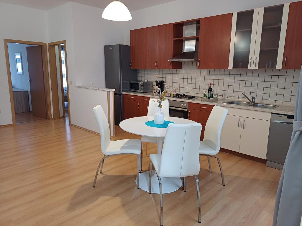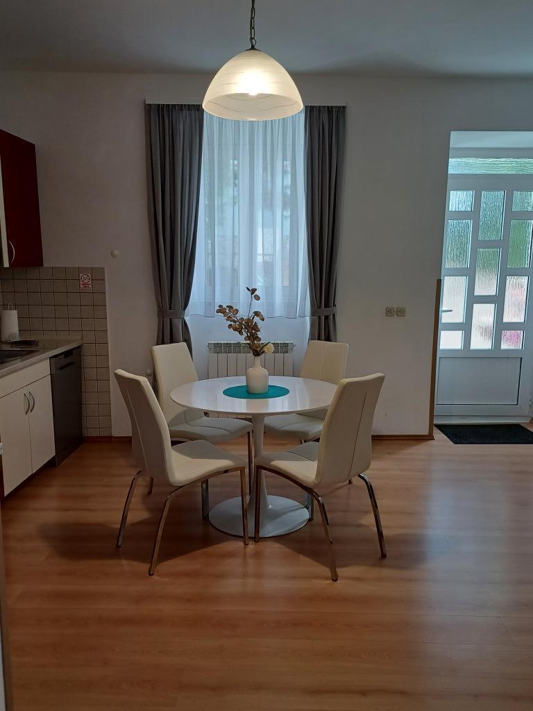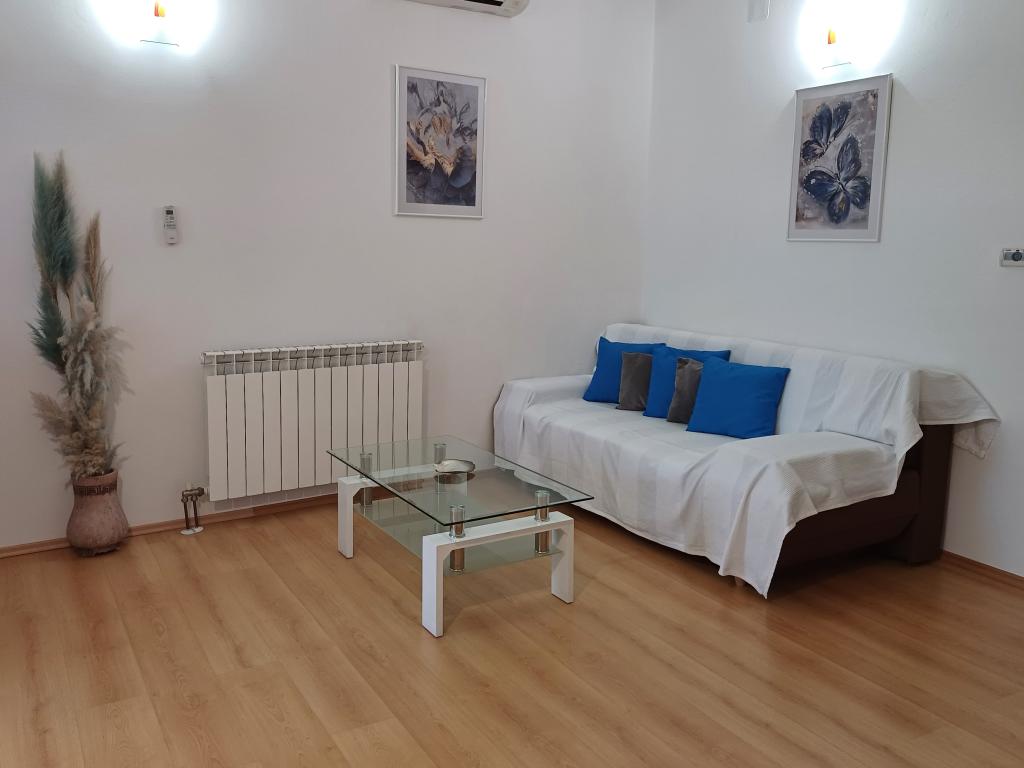 En hyggelig lejlighed i centrum af Punat - ideel til din ferie! Lejligheden er beliggende i et familiehus i hjertet af Punat, med en fantastisk beliggenhed tæt på alle nødvendige faciliteter. Nyd at slappe af på terrassen i stueetagen i fred og ro. Du behøver ikke bekymre dig, når du ankommer, for vi sørger for sengelinned og håndklæder. Køkkenet er fuldt udstyret med service, brødrister, elkedel, filterkaffemaskine, stort køleskab med fryser og opvaskemaskine. Udover aircondition har lejligheden også centralvarme, så du kan bo hos os selv i årets koldere måneder. Hvis du bliver længere, tilbyder vi strygejern og strygebræt. Der er en parkeringsplads i gården foran lejligheden. Vi accepterer også kæledyr mod et ekstra gebyr. Kom og tilbring en uforglemmelig ferie i vores lejlighed.