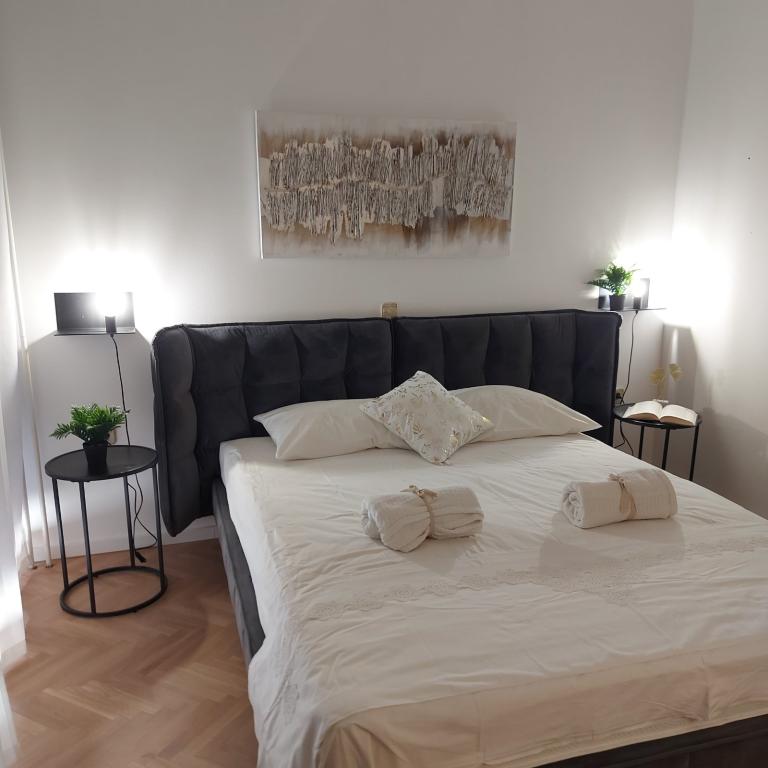 Vores lejligheder ligger på første sal i et familiehus. Lejlighederne er nyindrettede, moderne og funktionelt udstyrede (WI-FI, aircondition, opvaskemaskine) og giver et behageligt og fredeligt ophold. Der er gratis lukket parkering i husets gård. I gården er der et lysthus med grill, hvor du kan nyde skyggen. Væsentlige faciliteter såsom strande, restauranter og butikker er inden for gåafstand.