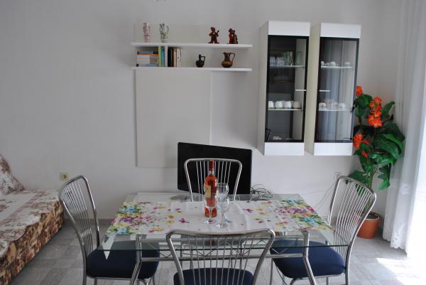 I de fredelige omgivelser i Banjol, halvvejs mellem Barbat og den gamle bydel i Rab, ligger Silvy-huset. Blue Moon-lejligheden er en speciel boligenhed, der omfatter hele husets loft med en stor terrasse og havudsigt. Terrassen har et siddeområde og et overdækket område, så det er muligt at opholde sig på terrassen selv i den solrige del af dagen. Lejligheden består af et moderne udstyret køkken og stue, 2 værelser (et soveværelse og et børneværelse) samt en lille gang og 1 toilet med bruser.