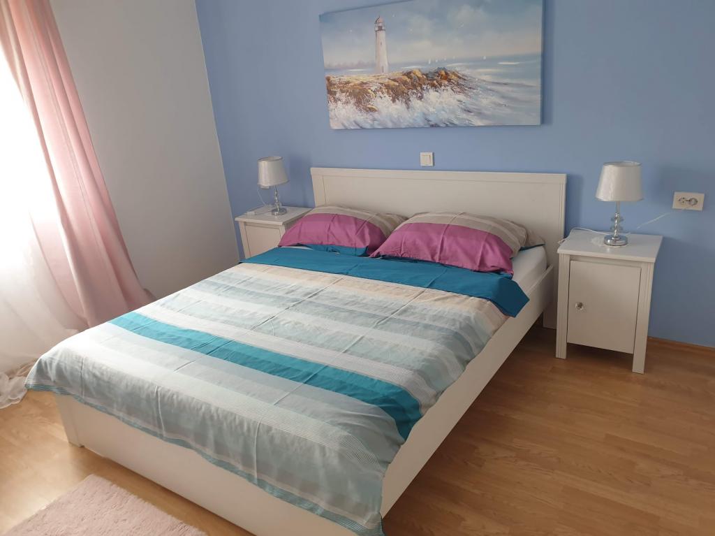 Værten (Franjo og Maria) er de to venligste mennesker, du kan møde. Jeg kan ikke understrege nok, hvor venlige og hjælpsomme de er. De gjorde alt, hvad de kunne for at få os velkomne og leverede endda vin, chokolade og et par basale ting til vores ankomst. Lejligheden er immaculately ren og pænt dekoreret og tilbyder en meget god pris for pengene. Det indeholder en meget behagelig seng, og udsigten fra terrassen er smuk over havet og den gamle bydel. Placeringen er stor, tæt på sandstranden og den gamle bydel. Fremragende kommunikation fra ejeren fra start til slut. Jeg anbefaler denne lejlighed til en afslappende ferie.