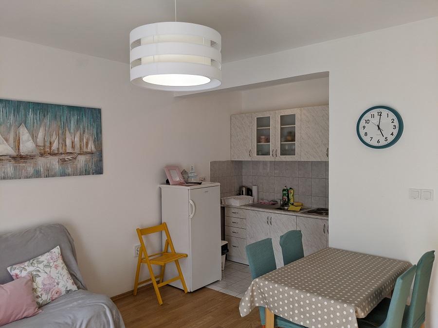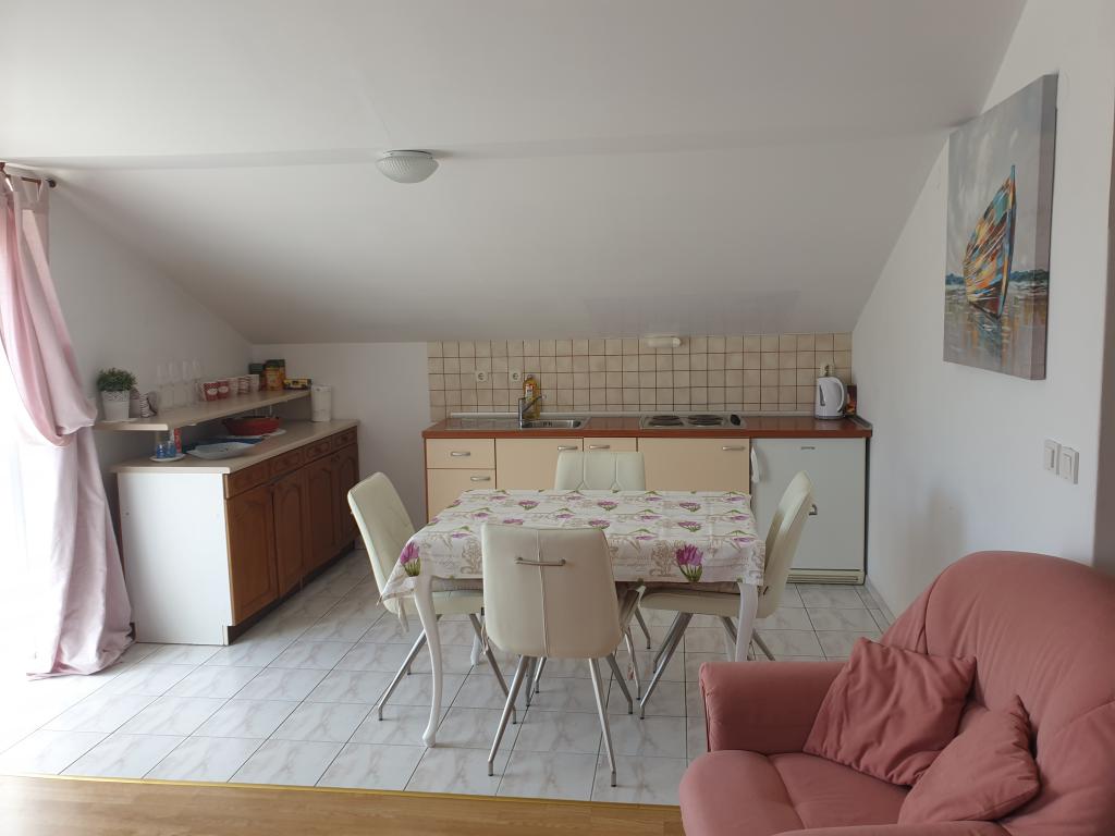 Lejligheden er ret stor til en familie på fire, pæn. Terrasse med havudsigt. Personalet er meget venligt, de fortalte os meget om den smukke ø Rab, hvoraf de fleste så vi. Vi anbefaler lejligheden til alle i nærheden af en fremragende sandstrand, yderst velegnet til små børn. En ferie at ønske!