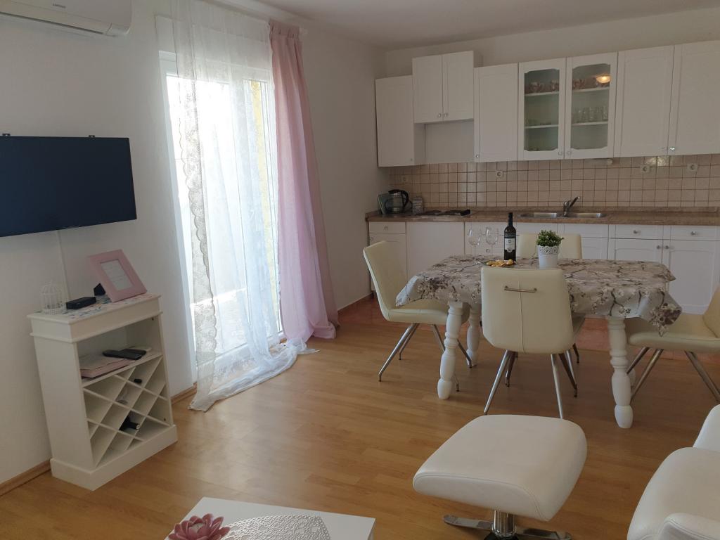 Ren, ryddig og veludstyret lejlighed. Fra terrassen er der en smuk udsigt over havet og den gamle bydel. Sikker parkering, aircondition og internet. Fantastisk beliggenhed tæt på sandede bugter og den gamle bydel. Værterne er venlige. Jeg anbefaler det til alle, der ønsker at besøge øen Rab.