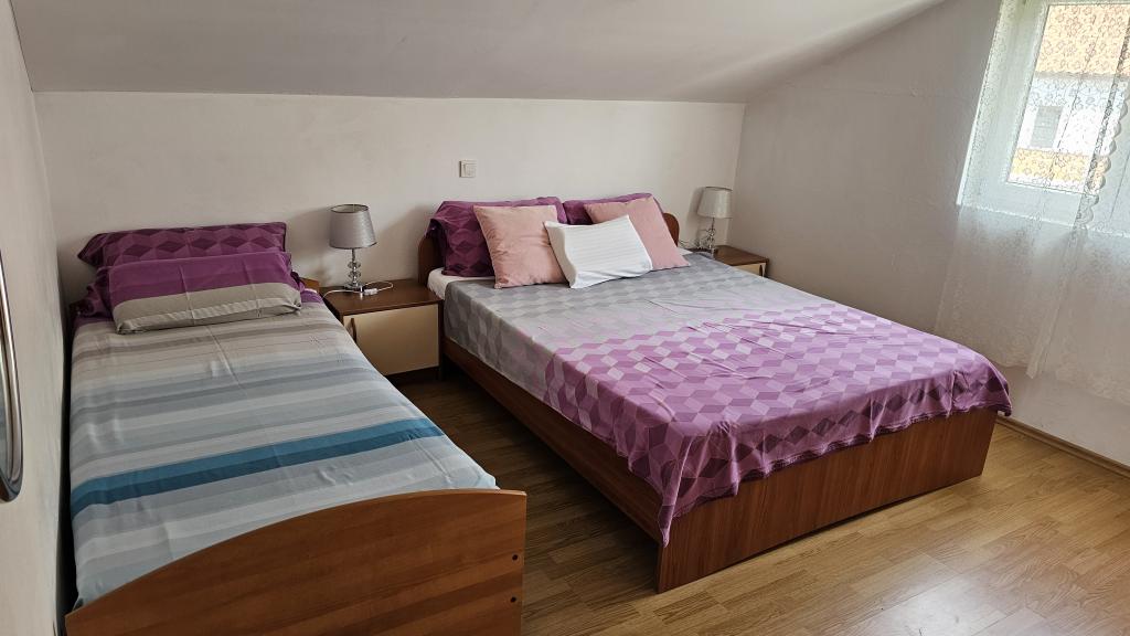 Vi var meget tilfredse med Maria, smukt rent sted overalt, havudsigt, dejlig værtinde og familie, hun forklarede alt efter ankomst, hvor der er hvad der er muligt, og hvor det er muligt at gå og hjalp alle. Indkvartering ligger en kort gåtur omkring 5 minutter fra stranden og 10 minutter fra byen Rab. Vi havde en hel lejlighed, soveværelse, køkken med stue, balkon og badeværelse, alle 100 procent udstyrede og perfekt ryddige. Mange tak for dit ophold.