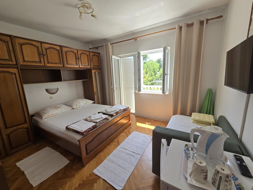 Bygningen er en familie hus med en stor have, stor have dækket med grønt og blomster. Vi har en lang tradition for turisme. Huset er beliggende 5 min gang til havet, hvor der er en stor sandstrand. Stranden er en butik, restaurant, tobak butik, frisør, fitness og andre faciliteter. Byens centrum har en 20-minutters gåtur langs kysten, samt muligheden for en taxa båd.