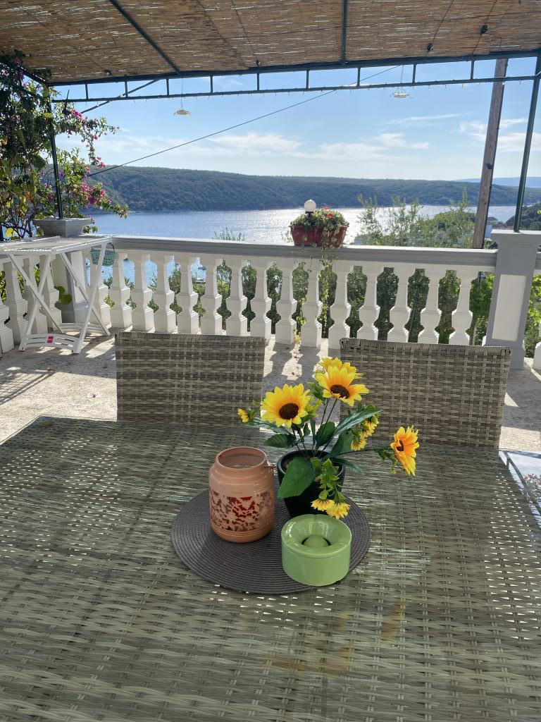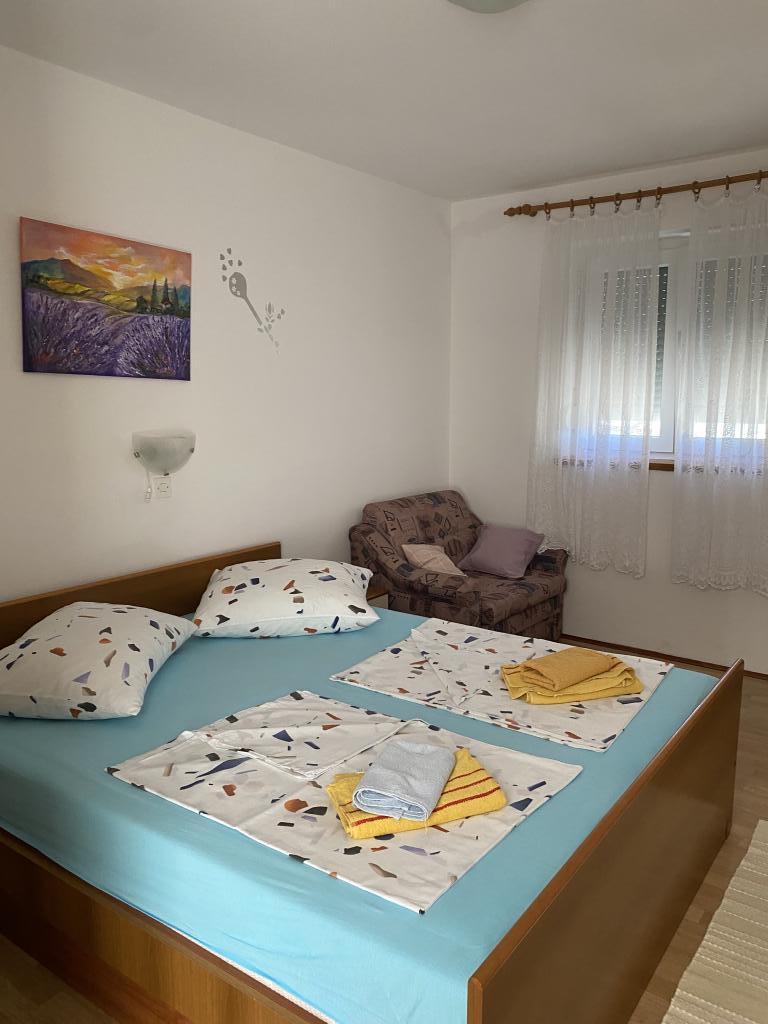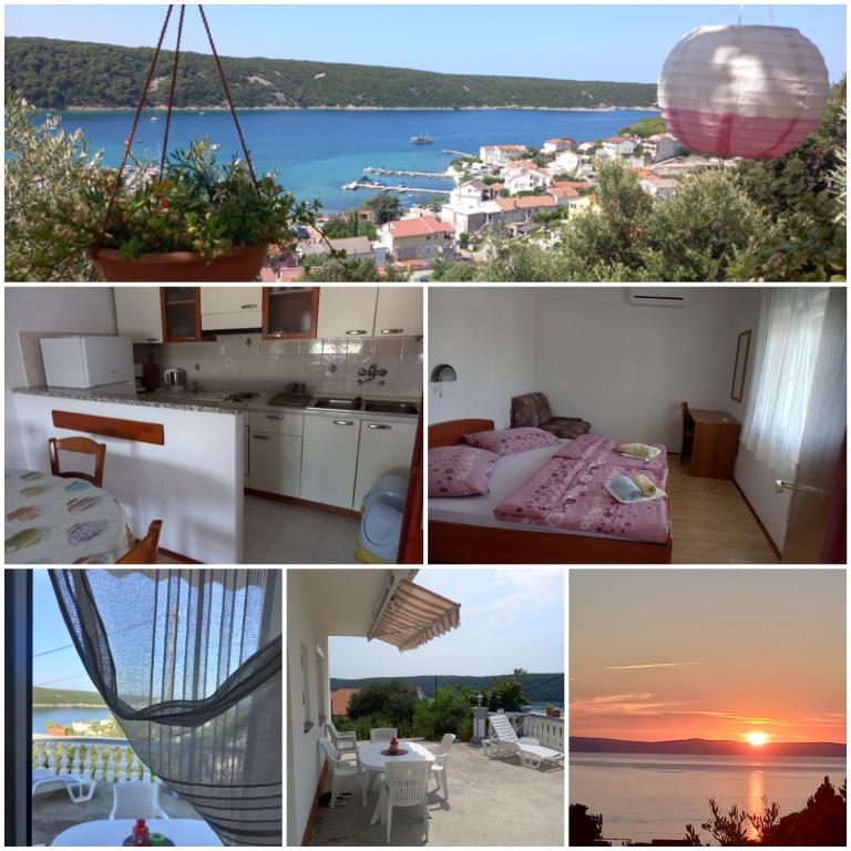Lejlighed til 4 personer, ca. 300 m fra havet og stranden. Lidt på bakken, med havudsigt, fred og ro, terrasse, parkering, grill, wifi, TV, vaskemaskine, aircondition, fortøjningsplads til en båd op til 7 m.