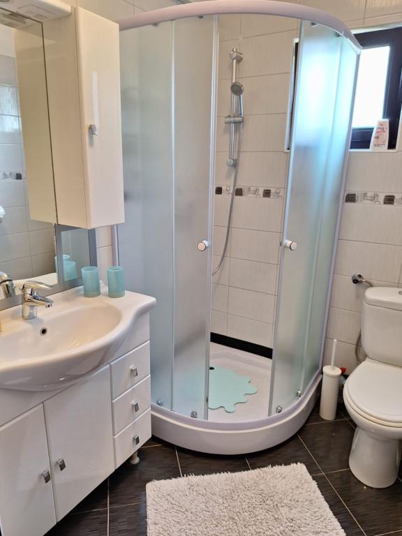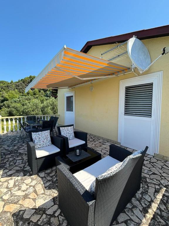 Jeg udlejer 3-værelses lejligheder på 55 m2 på husets 1. sal og husets stueplan. Lejlighederne er fuldt udstyrede og indeholder: Stue og spisestue med TV med parabol og aircondition. To soveværelser. Hvert værelse med 1 dobbeltseng (160 cm, længde 200 cm), garderobeskab og udgang til terrasse. Køkken (køleskab, 4 kogeplader, opvaskemaskine, elkedel, elektrisk kaffemaskine, brødrister, mikroovn) Badeværelse med toilet, bruser og håndvask. En stor terrasse på 35m2 med udsigt over havet, møbler til hvile og et spisebord. Kæledyr er ikke tilladt. Til medbenyttelse: grund 400 m2 (indhegnet). Terrasse, havemøbler, grill. I huset: adgang til internet, vaskemaskine (til medbenyttelse mod ekstra gebyr). Parkering ved siden af huset på grunden. Lejligheden er beliggende i en blind vej, 800 m fra centrum af Rab, 5 km fra centrum af Kampor, 15 km fra centrum af Lopar, 800 m fra havet, 800 m fra stranden, 100 m fra stranden. butik.
