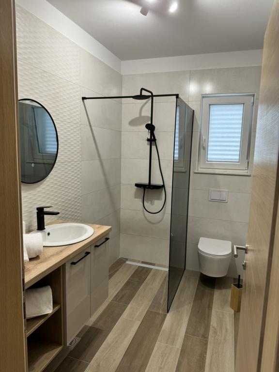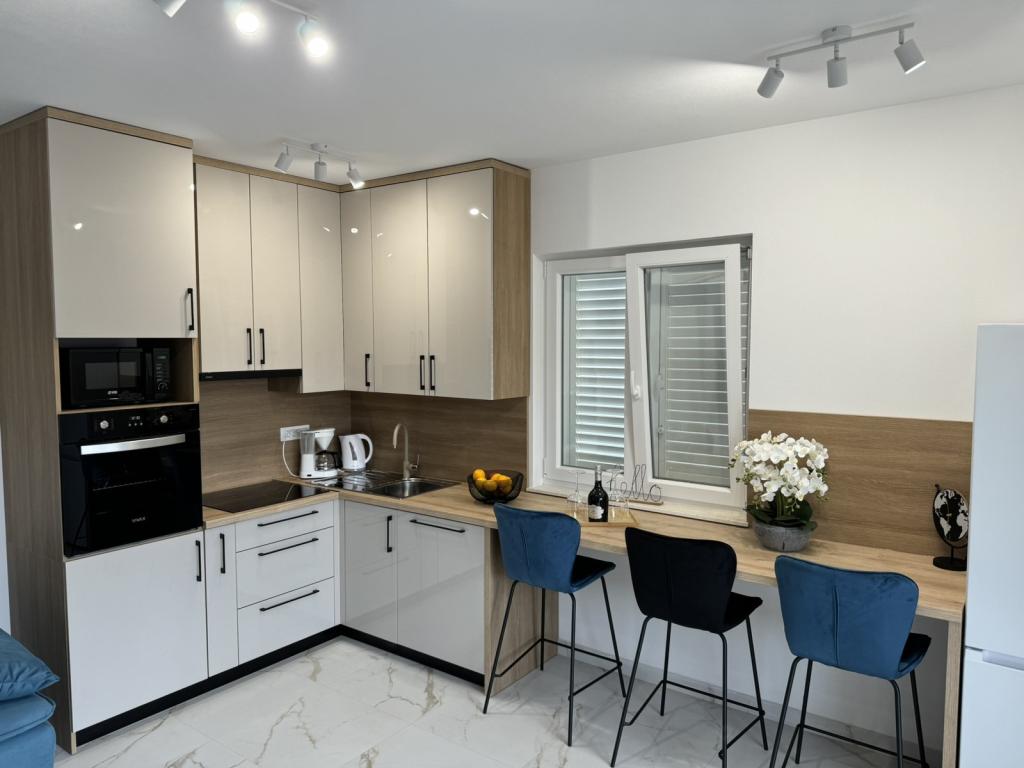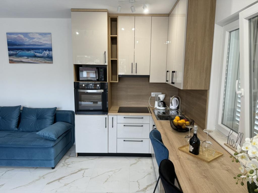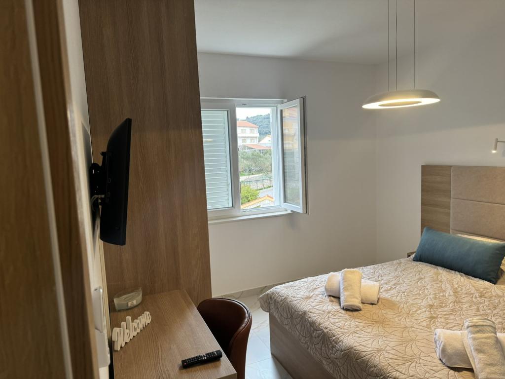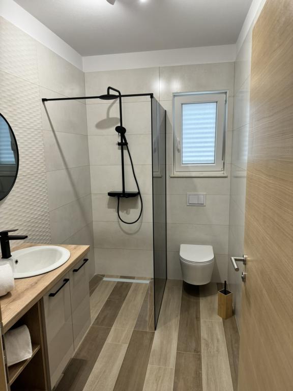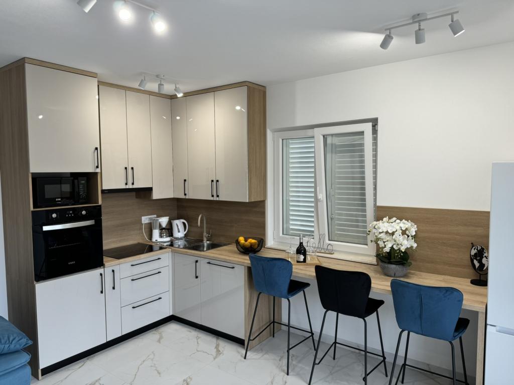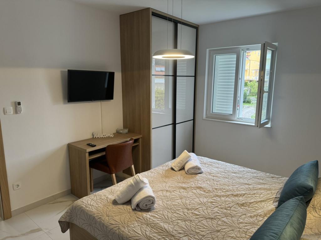Fuldt og moderne møblerede lejligheder i en rolig del af øen Rab. Lejlighederne ligger 5 minutters gang fra stranden i Grat og 10 minutters gang fra det gamle centrum af Grat, supermarkeder er også 200 meter fra bygningen. Der er en stor gratis parkeringsplads og legeplads foran bygningen.
